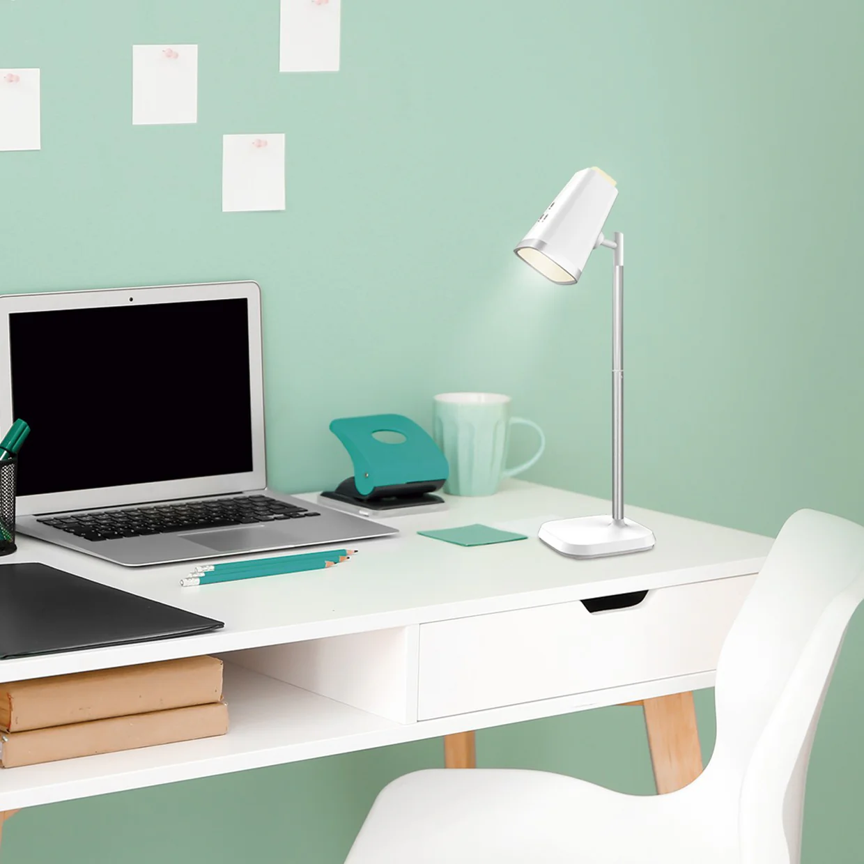 El cambio de color se realiza a través del interruptor táctil del flexo.