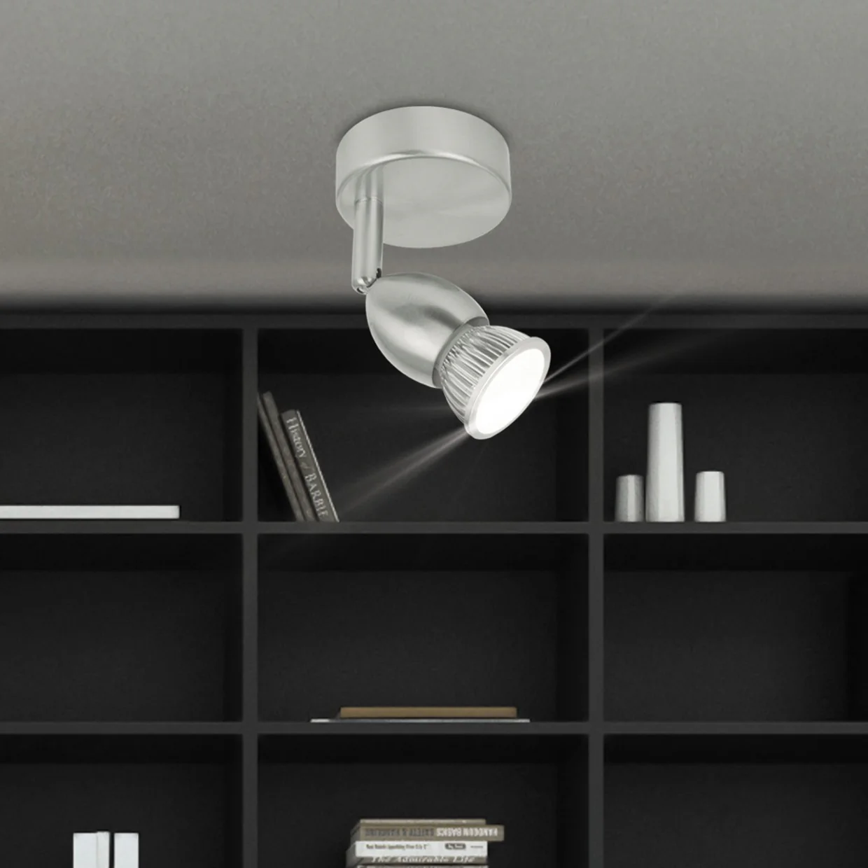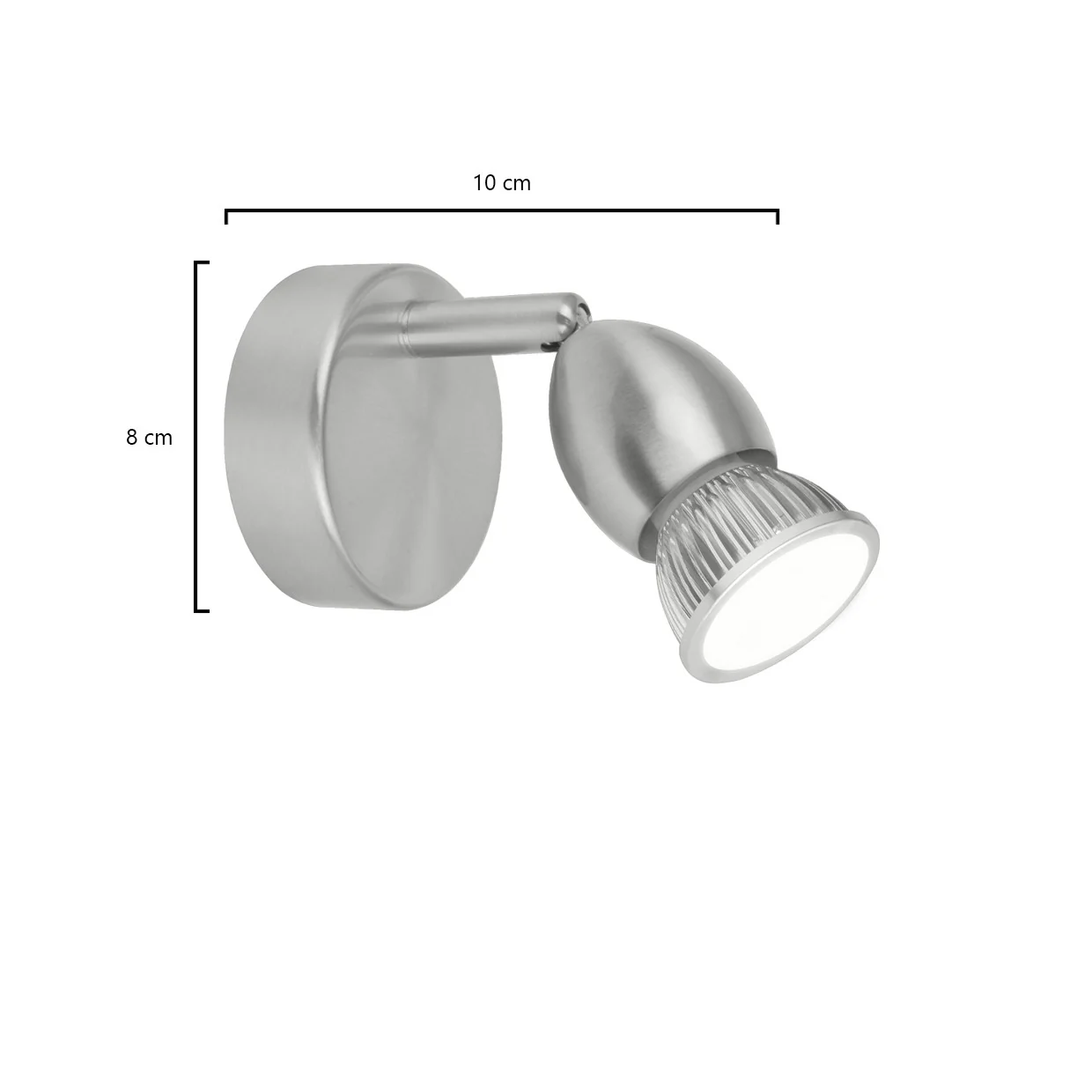 Su acabado en níquel satinado aporta un toque sofisticado a cualquier ambiente. El foco Bala es compatible con bombillas LED GU10 (máx. 40W, no incluidas), lo que te permite ahorrar energía y personalizar la intensidad y el color de la luz. Adquiere ya tu foco Bala en LuzGurú y disfruta de una iluminación eficiente y de diseño.