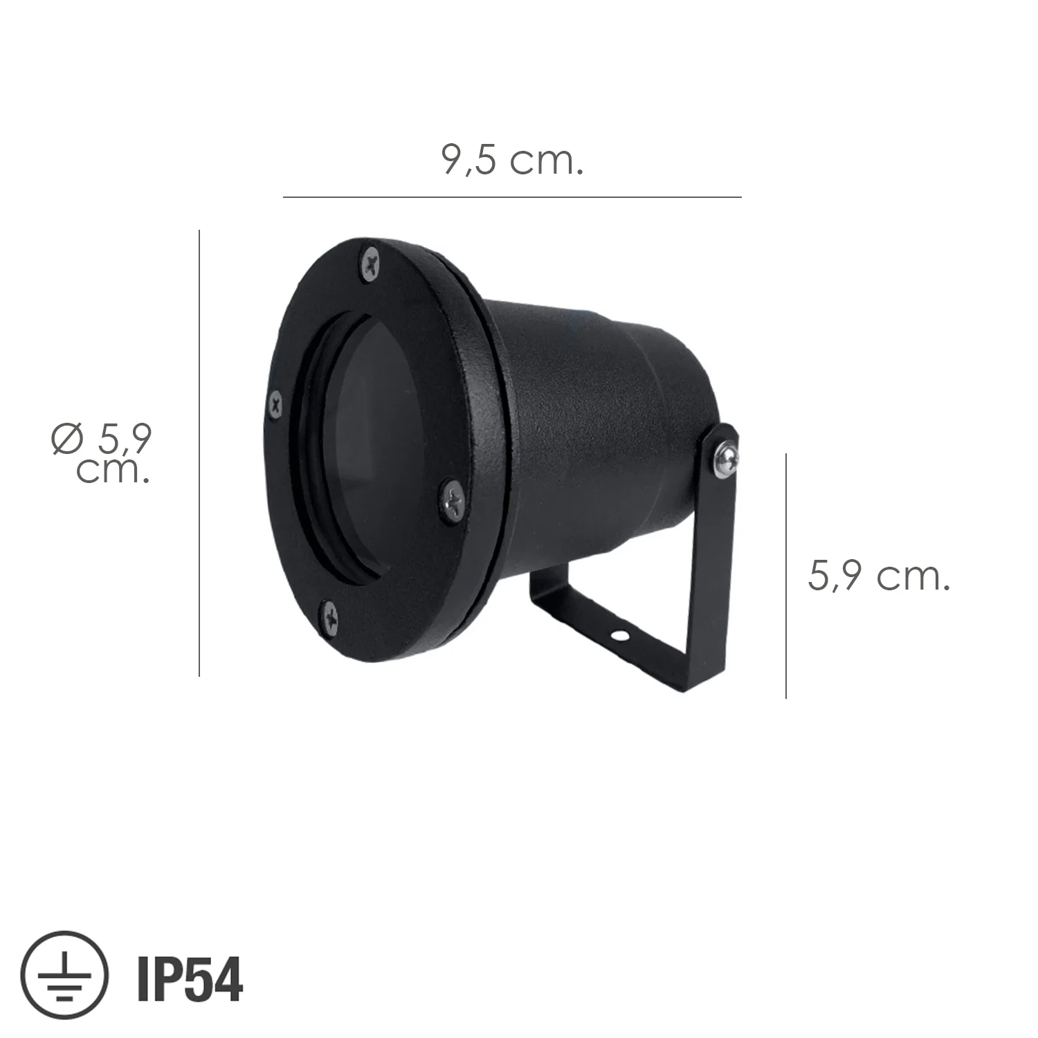 Foco Halógeno Papillon IP54 Jardín Con Soporte Negro