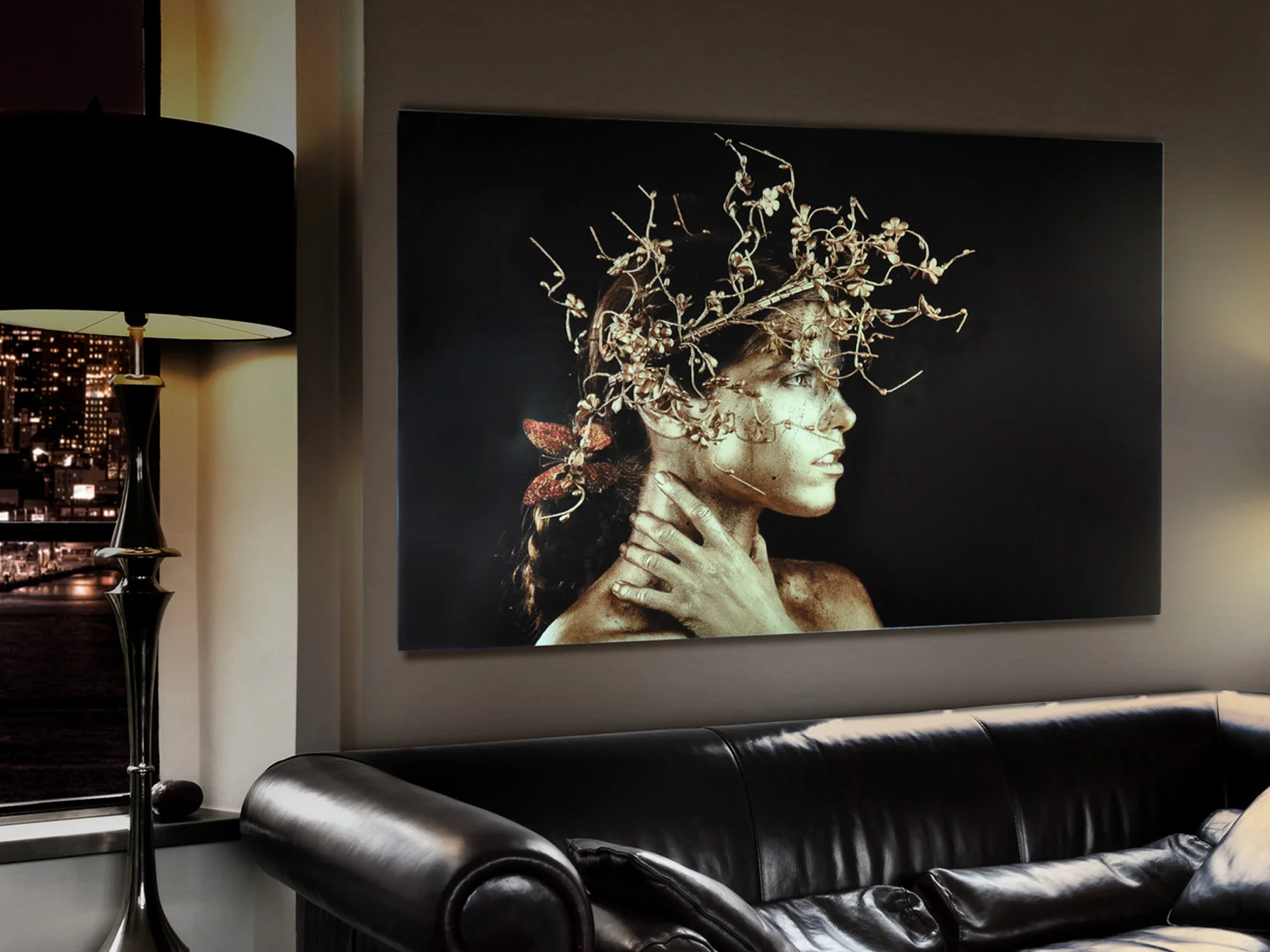 La foto ‘Mujer Dorada’ no solo es una pieza decorativa, sino una declaración de estilo. El cristal templado sobre el que está montada la fotografía impresa garantiza durabilidad y un brillo excepcional. Su diseño moderno y los tonos dorados aportan calidez y elegancia al ambiente. Esta pieza está pensada para integrarse fácilmente en diversos estilos decorativos, desde los más minimalistas hasta los más eclécticos.