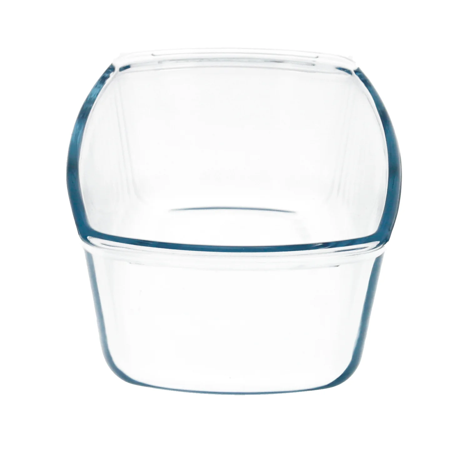 - Cristal de borosilicato de alta calidad, que al ser un material no poroso, no transfiere sustancias nocivas, y no conserva olor ni sabor de alimentos contenidos anteriormente. Además, le permite soportar cambios extremos de temperatura sin riesgo de grietas o roturas