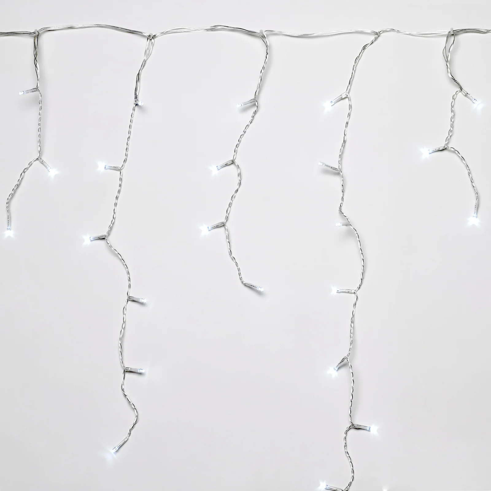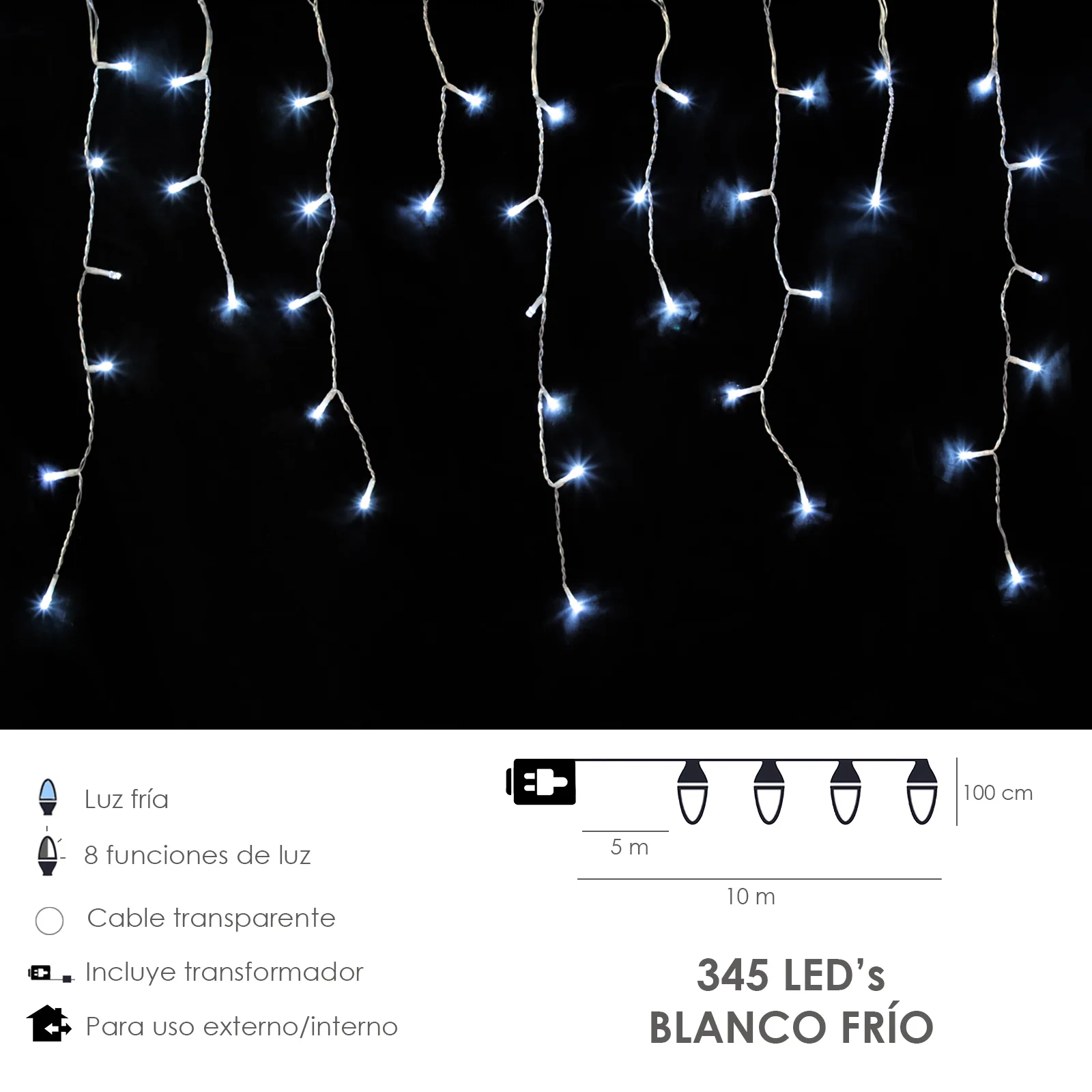 Guirnalda Luces Navidad Cortina 10×1 Metros 345 Leds Blanco Frio. Luz Navidad Interiores y Exteriores Ip44. Cable Transparente