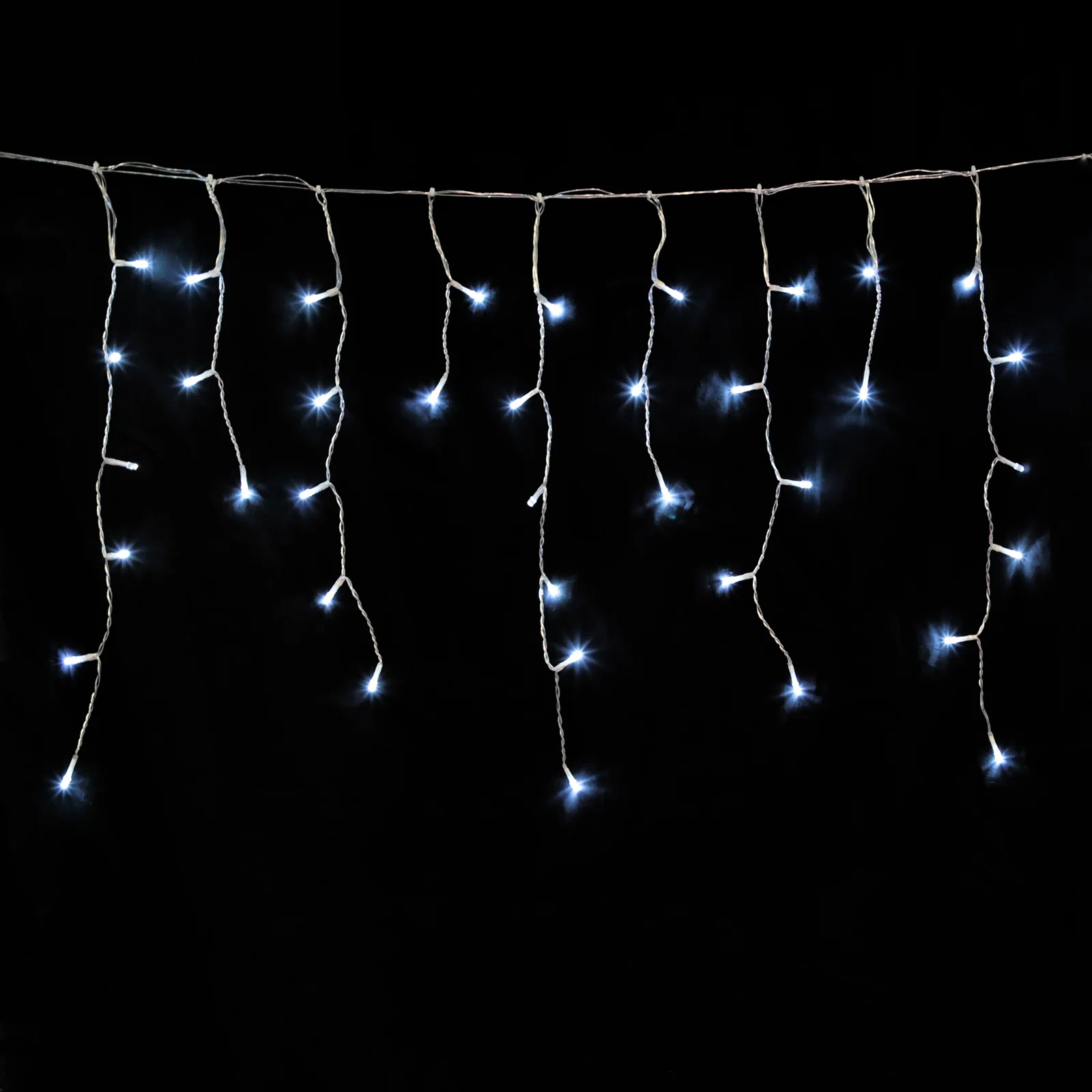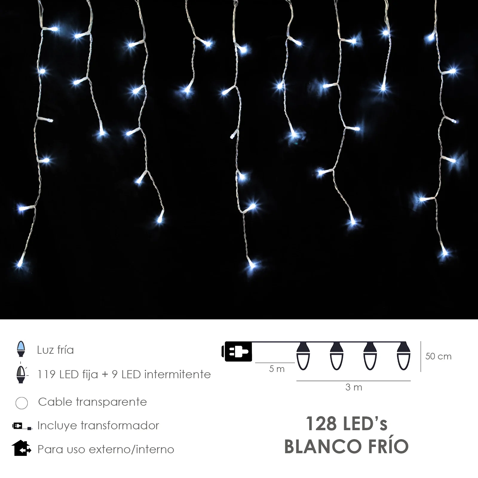 Guirnalda Luces Navidad Cortina 3×0, Metros 128 Leds Blanco Frio. Luz Navidad Interiores y Exteriores Ip44. Cable Transparente.