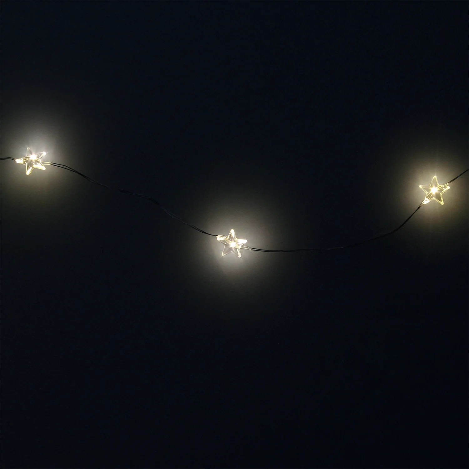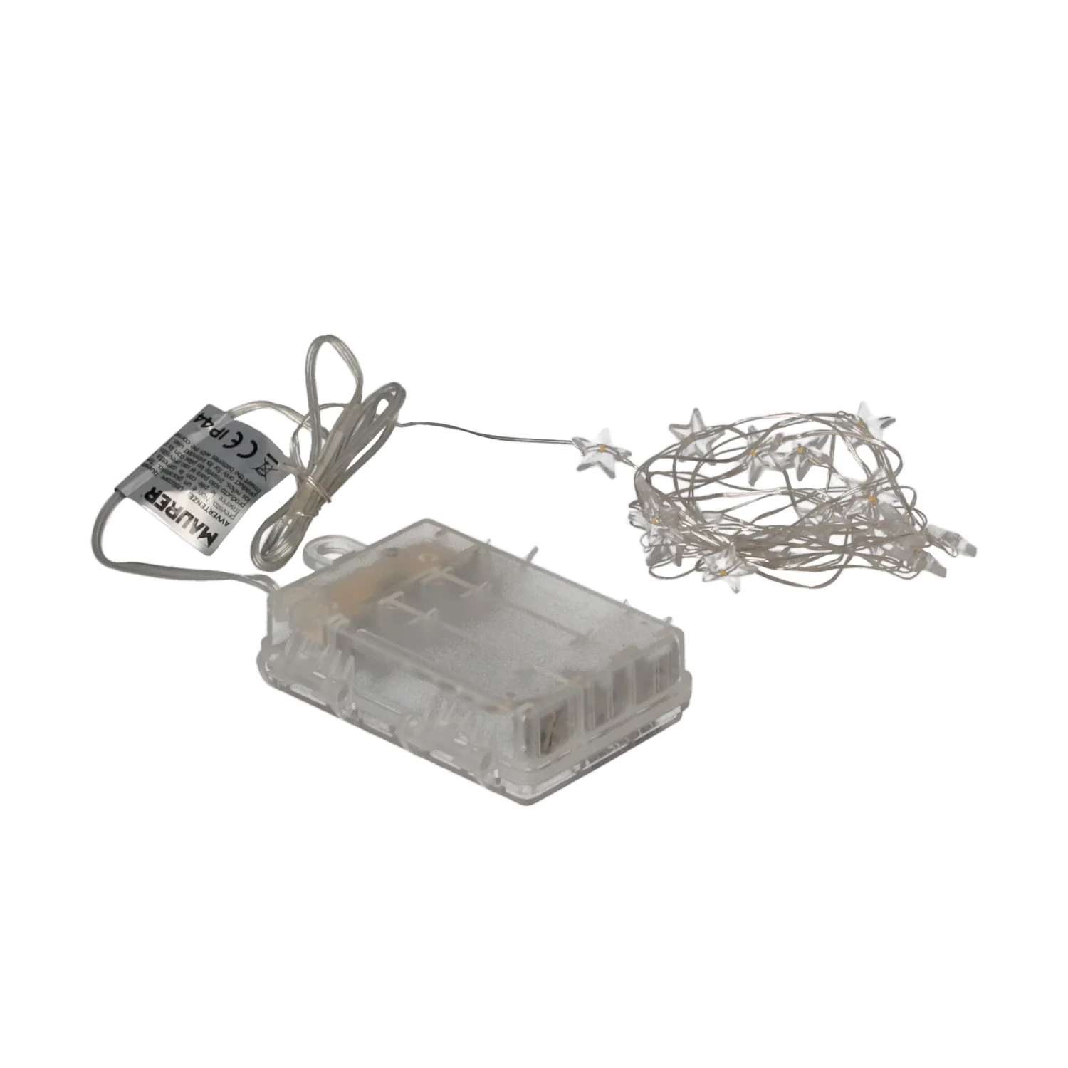 Guirnalda Luces Navidad Estrellas 20 Leds Color Blanco Calido.Luz navidad interiores y exteriores IP44 A Pilas 3AA (No Incluida)