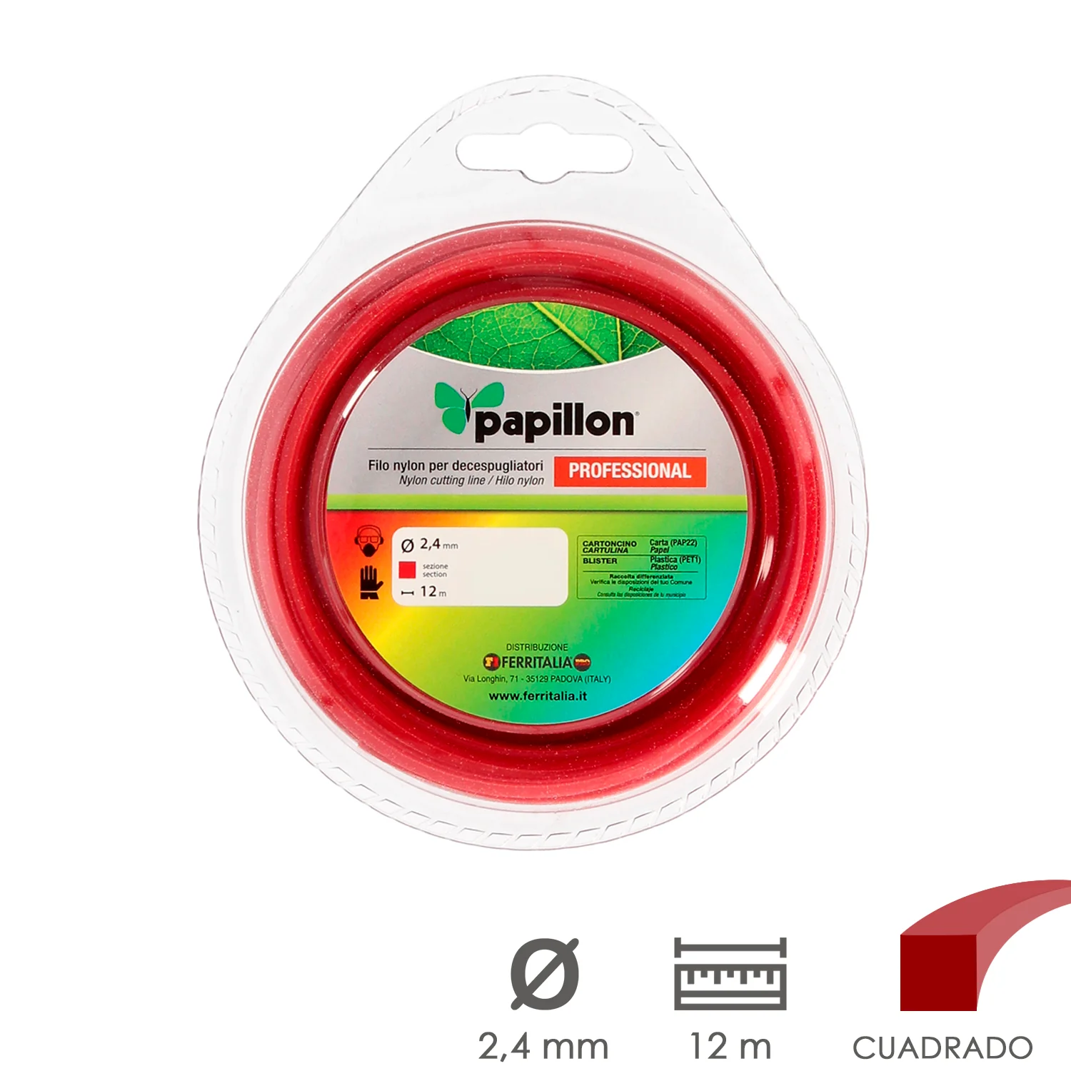 Hilo Nylon Desbrozadoras Cuadrado Profesional Ø 2,4 mm. Rollo 12 metros. Hilo Nylon Corte Desbrozadores Hierba, Jardin, Maleza