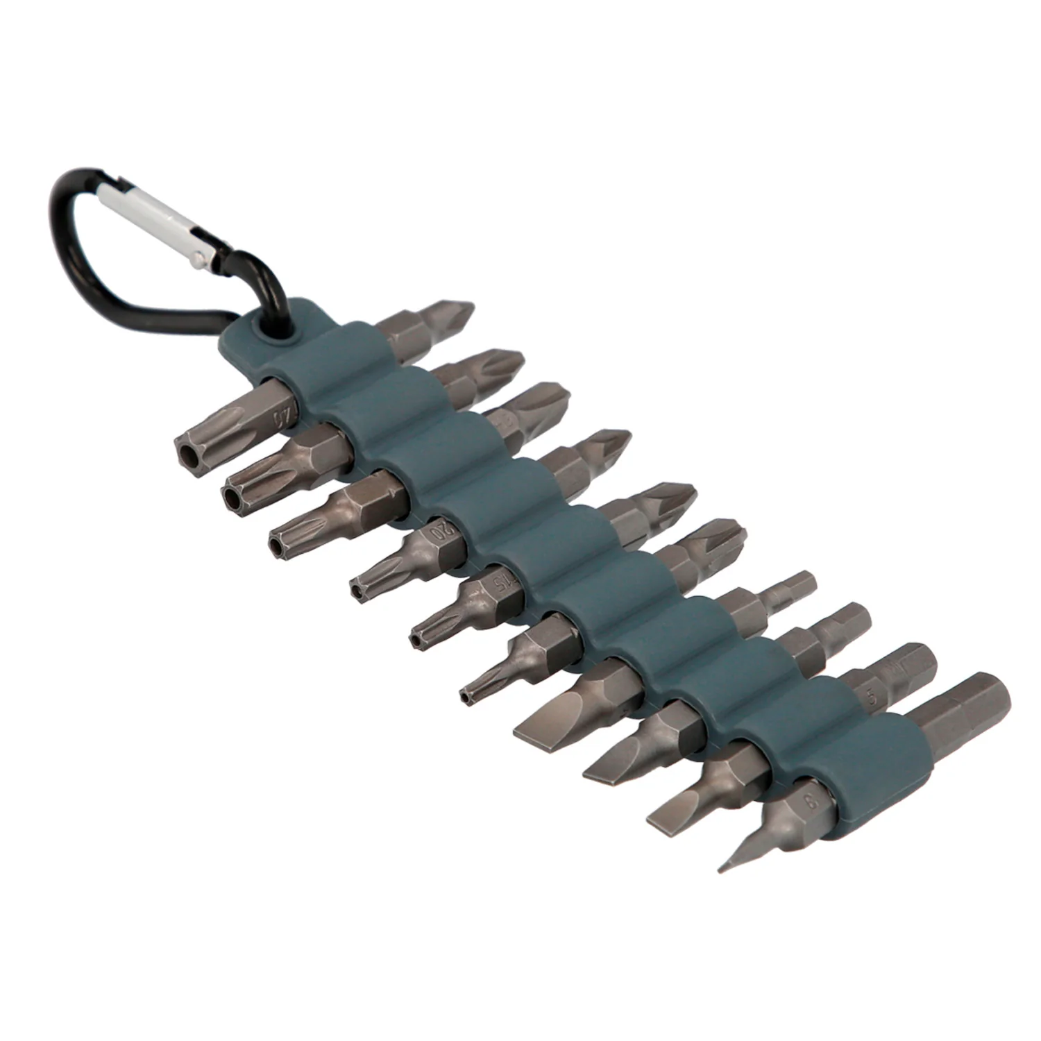 - Incluye mosqueton para ser colgadas en un cinturon o bien tenerlas de forma organizada en su caja de herramientas