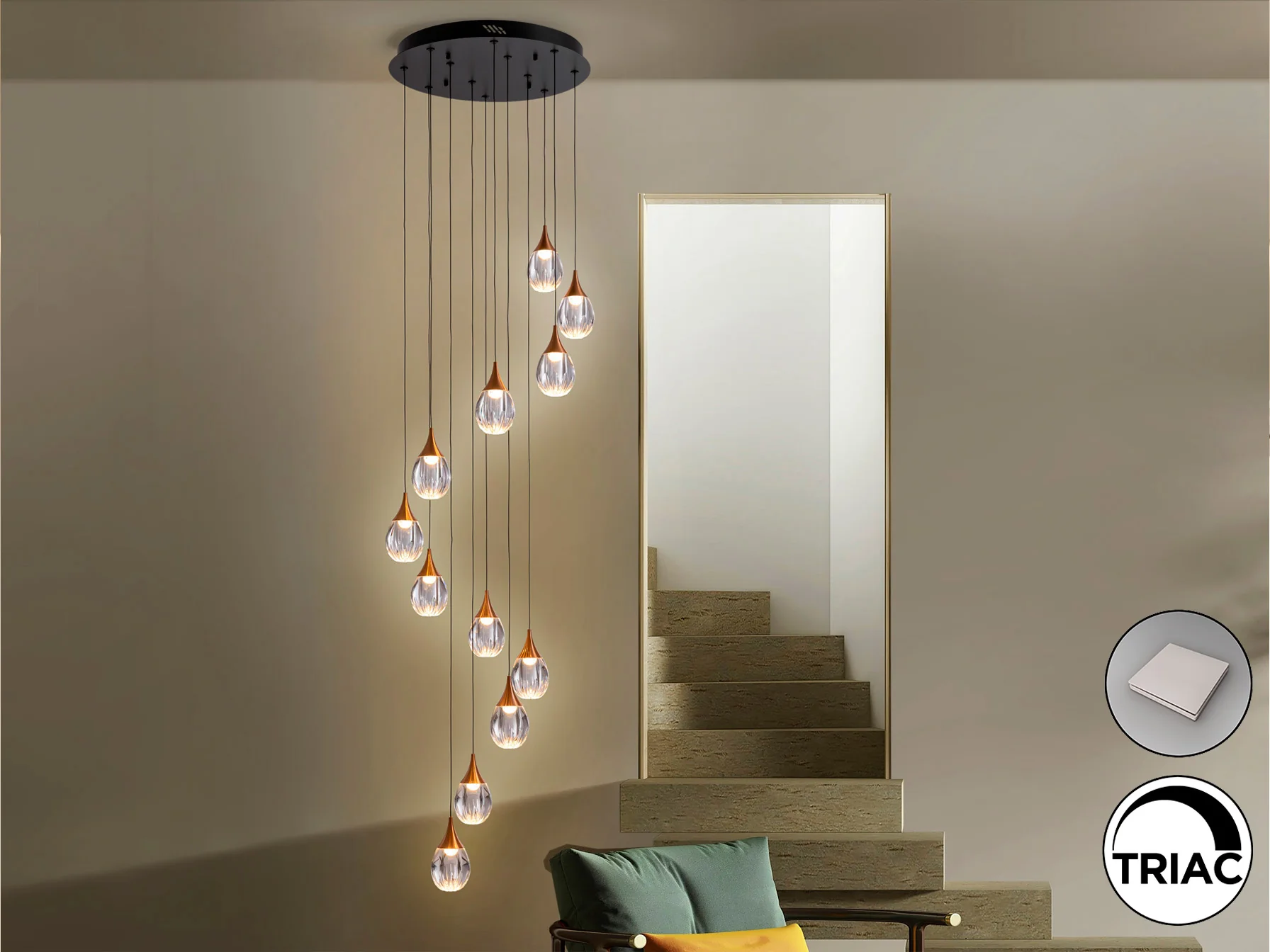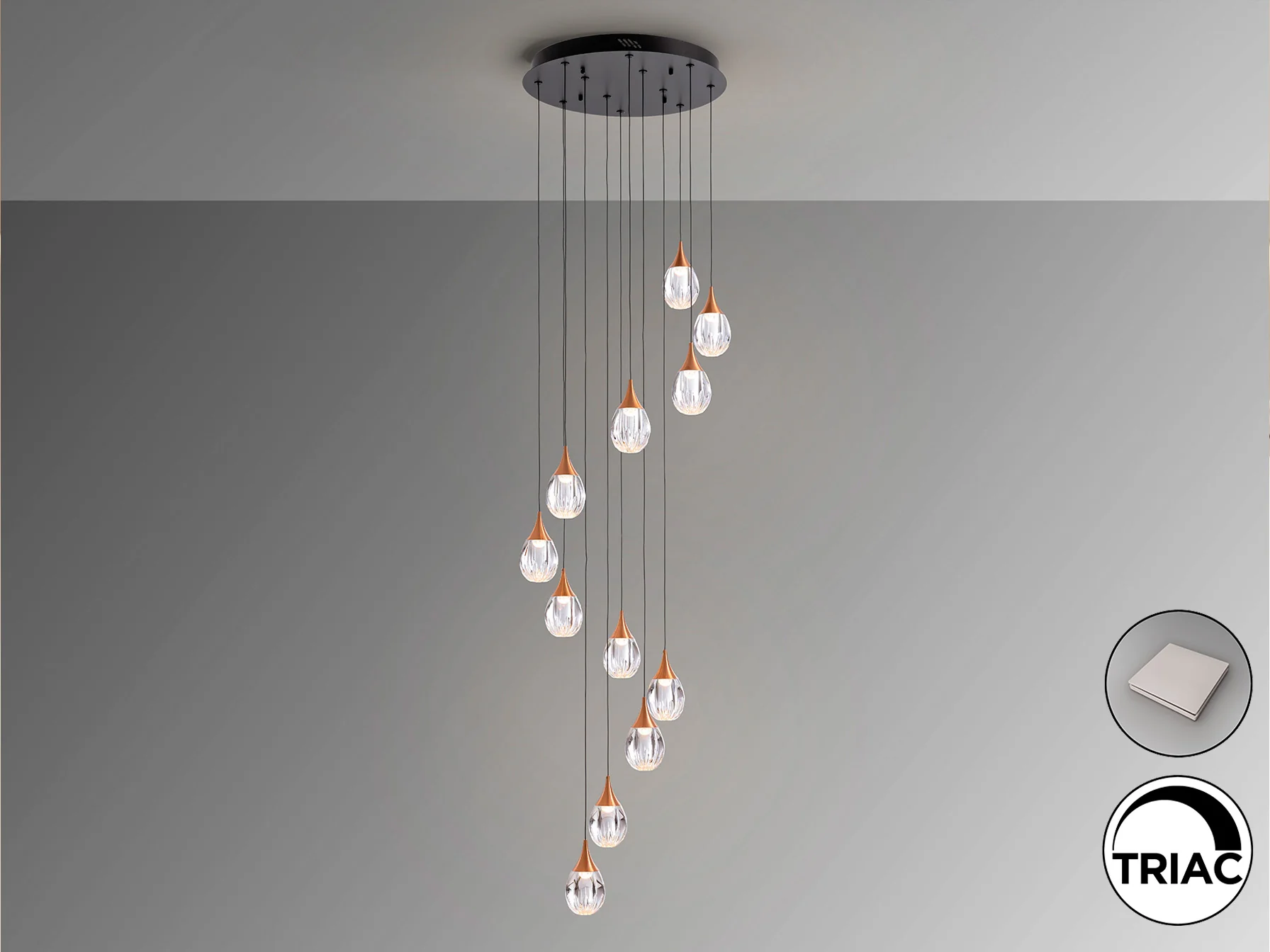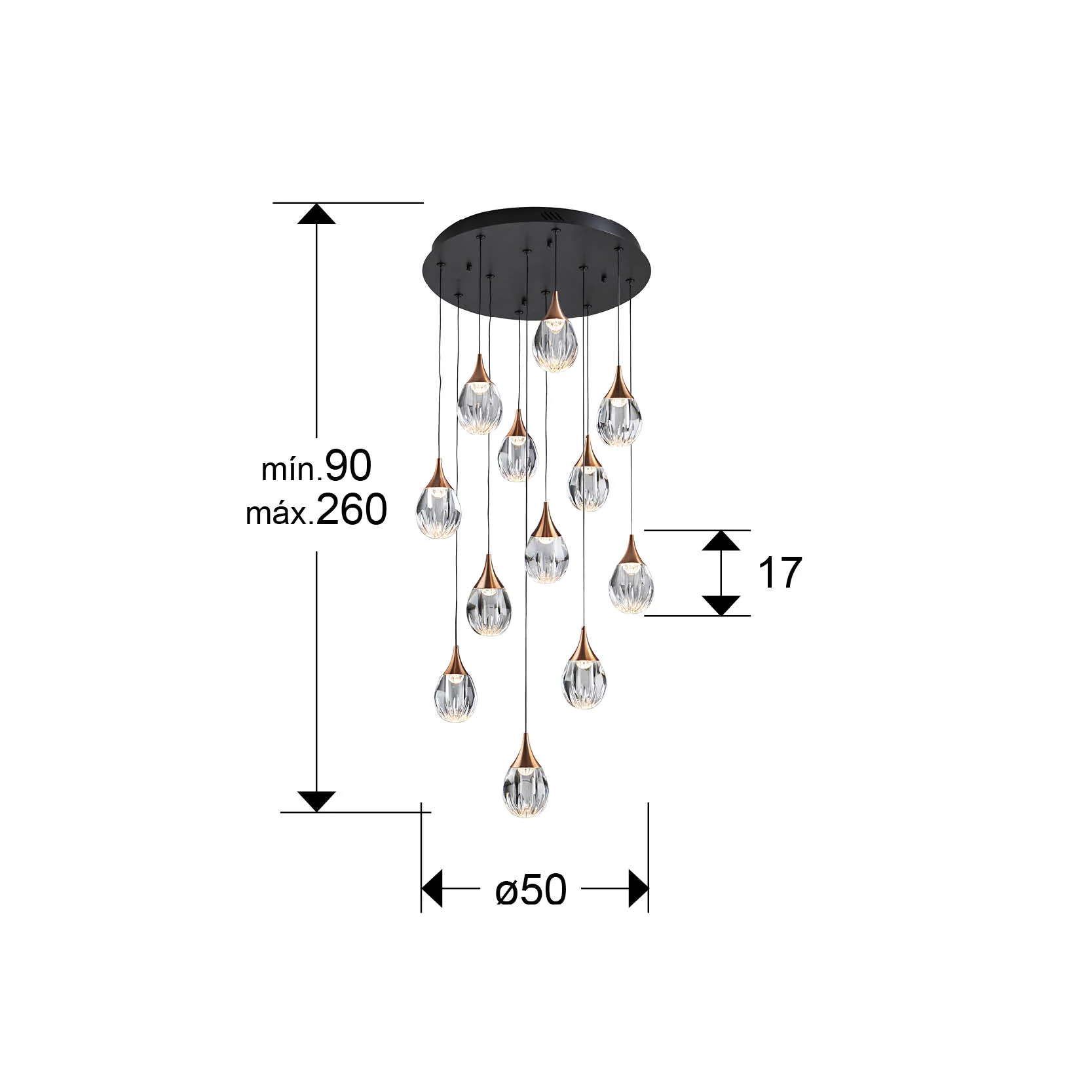 Lámpara Colgante 12 Luces Negro-Cobre Corina Schuller