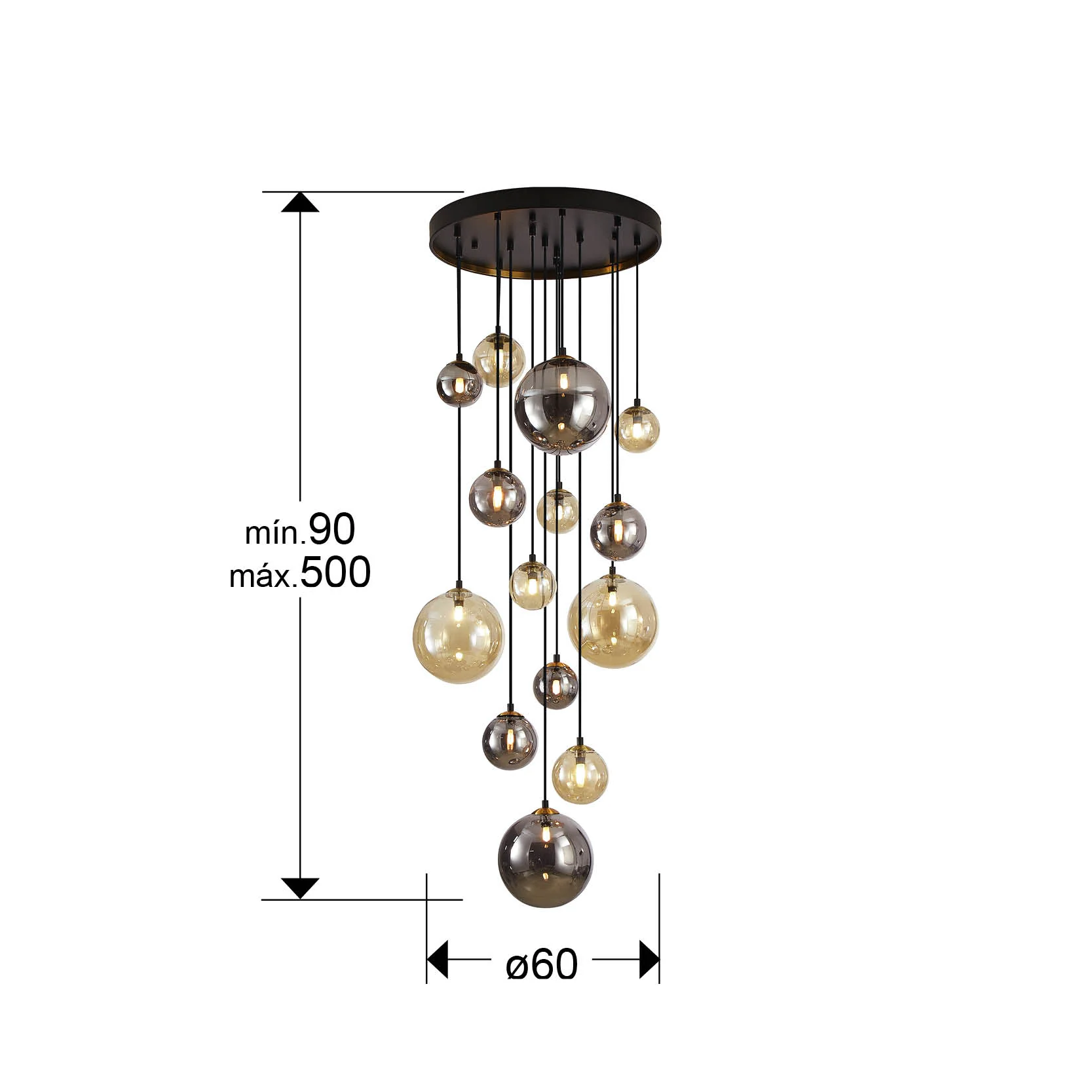 La lámpara colgante Dark de Schuller redefine la iluminación moderna con su diseño audaz y materiales de primera calidad. Sus 14 luces, combinadas con detalles en negro mate y latón satinado, crean un ambiente cálido y acogedor. Perfecta para salones y comedores, esta lámpara no solo ilumina, sino que también se convierte en una pieza central de diseño que captura todas las miradas, aportando un toque de distinción a tu hogar.