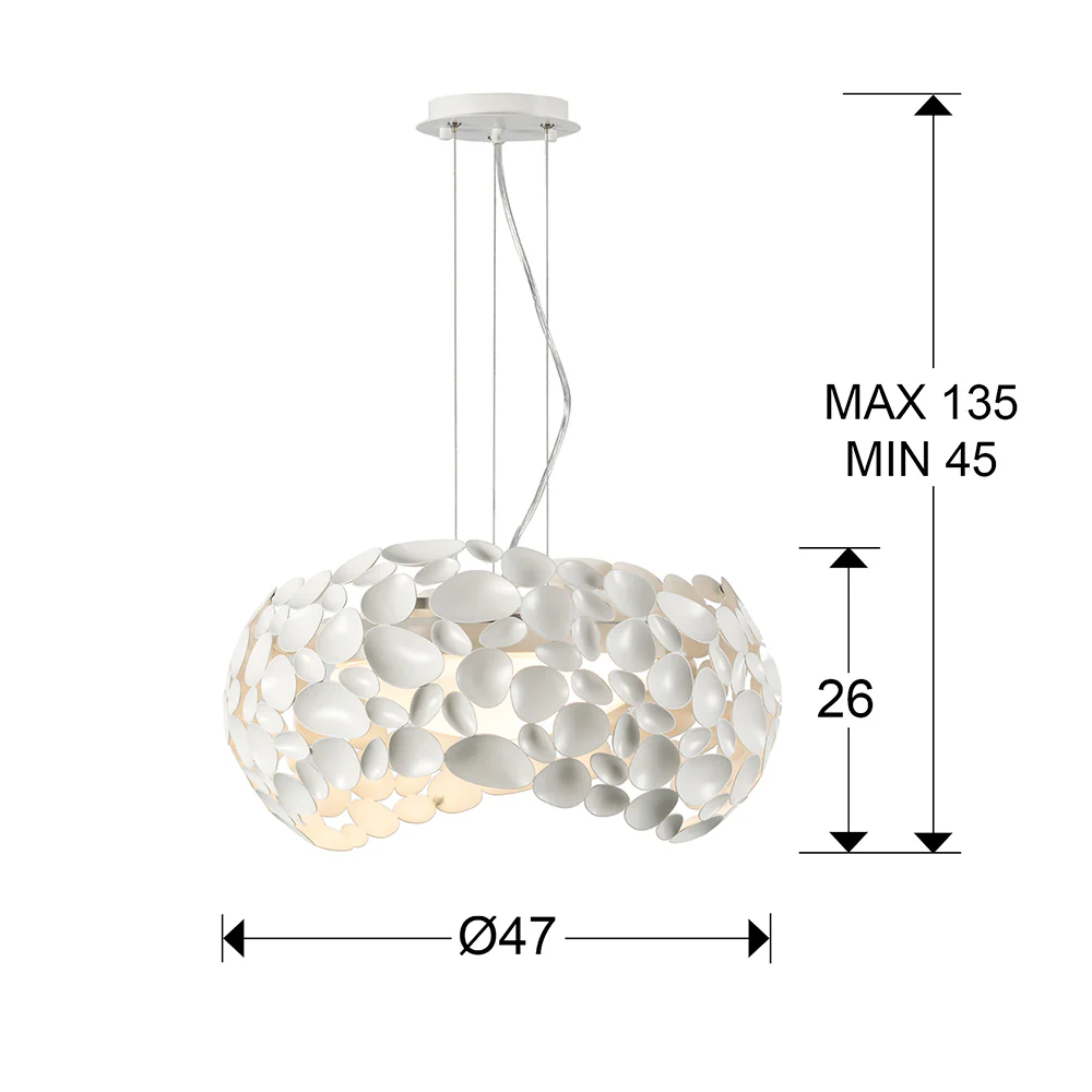 La lámpara colgante Narisa redefine la iluminación de tu hogar, fusionando la funcionalidad con un diseño moderno y nórdico. Sus 5 luces, distribuidas con armonía, inundan tu salón o comedor con una luz cálida y acogedora, creando un ambiente perfecto para disfrutar de momentos inolvidables. El acabado blanco mate aporta un toque de sofisticación discreta, integrándose a la perfección con cualquier estilo decorativo.