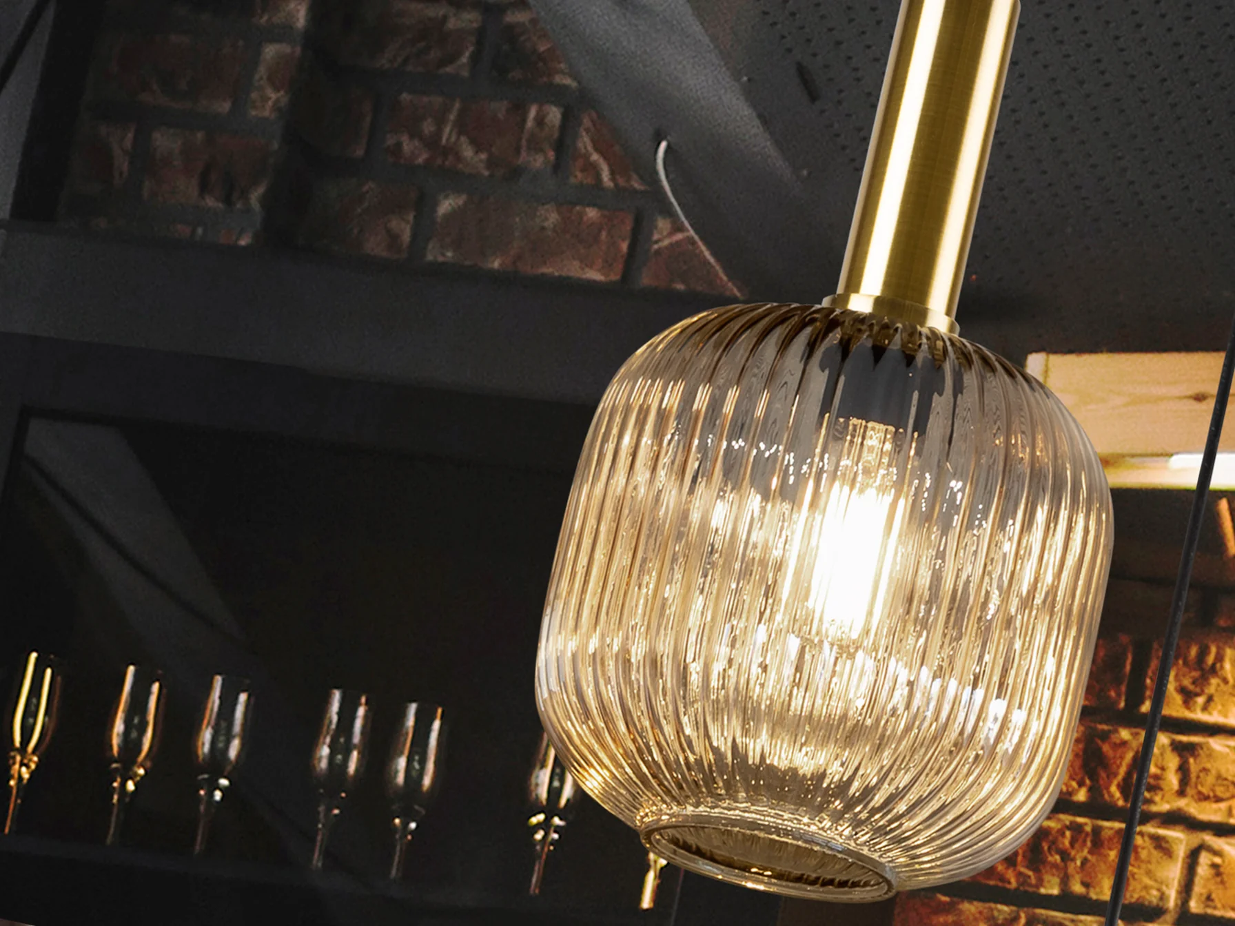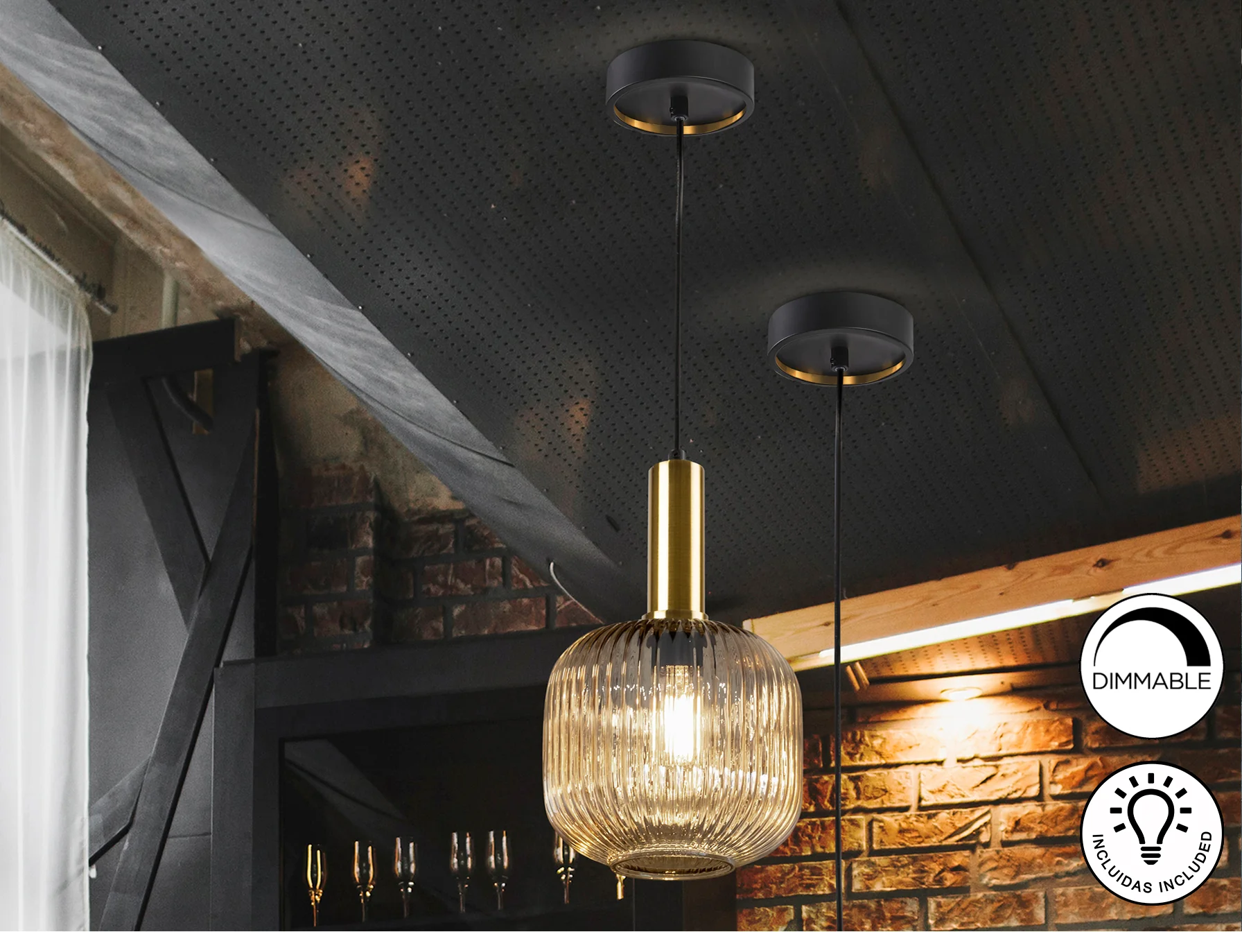 - Iluminación cálida y envolvente gracias al cristal ámbar.