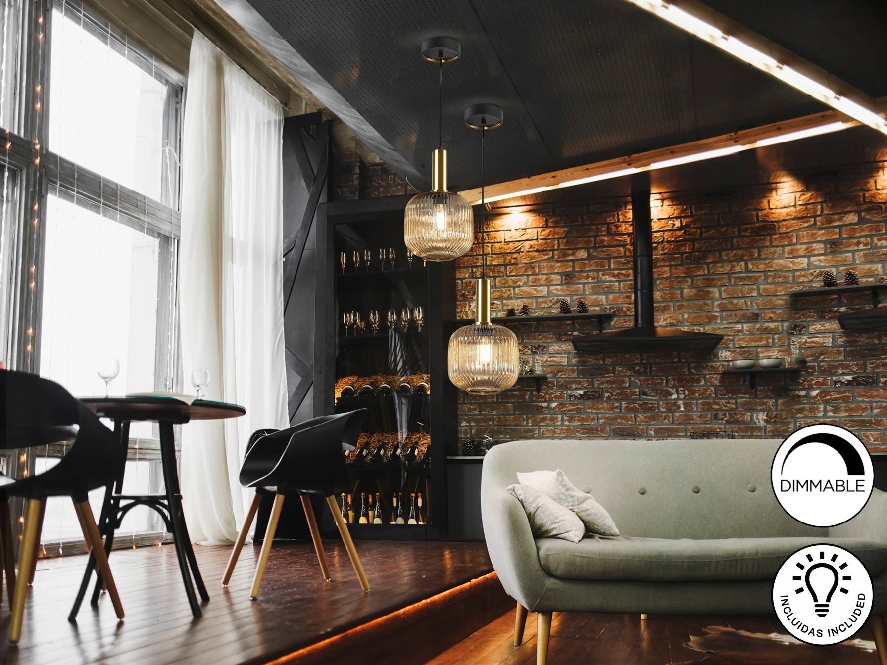 La lámpara colgante Norma no es solo una fuente de luz, sino una declaración de estilo. Su diseño industrial fusiona la robustez del metal negro mate con la calidez del latón satinado y la elegancia del cristal ámbar. Perfecta para salones y comedores, esta lámpara crea un ambiente acogedor y sofisticado, invitando a disfrutar de momentos inolvidables bajo su luz. Su estética moderna se adapta a diversos estilos decorativos, aportando un toque distintivo y personal a tu hogar.