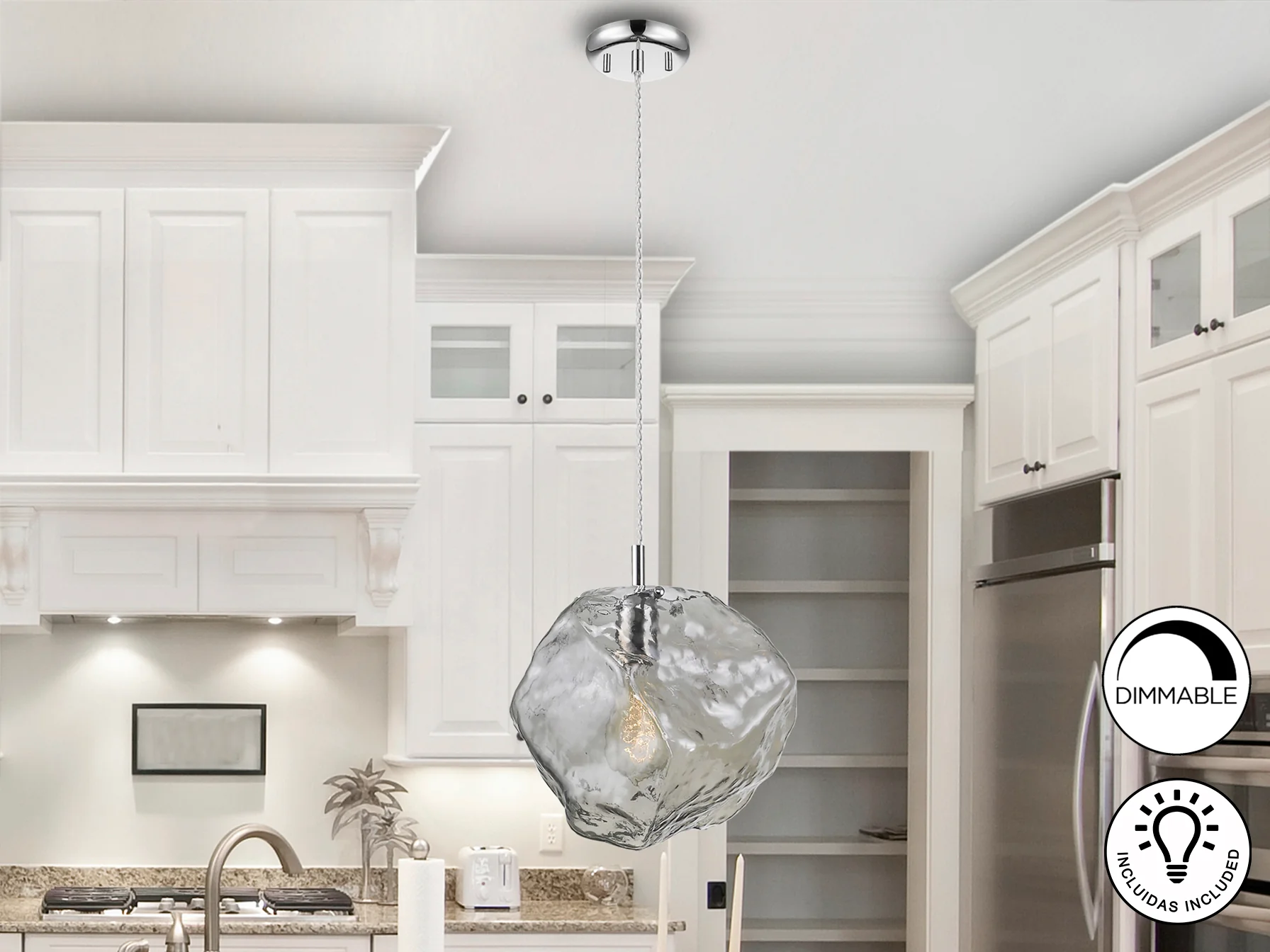 - Tulipa de cristal smoke claro que crea una luz cálida y acogedora.