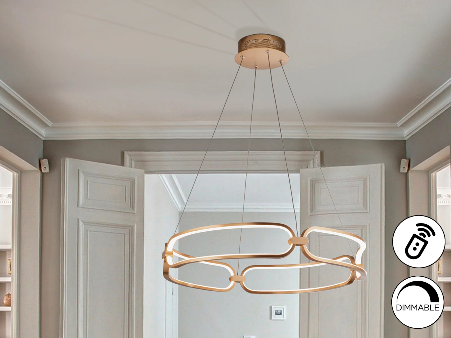 La lámpara colgante Colette en oro rosa no es solo una fuente de luz, sino una declaración de estilo. Su diseño moderno y los acabados de alta calidad transforman cualquier salón o comedor en un espacio acogedor y lleno de encanto. Imagina la luz cálida y envolvente creando el ambiente perfecto para tus momentos especiales.