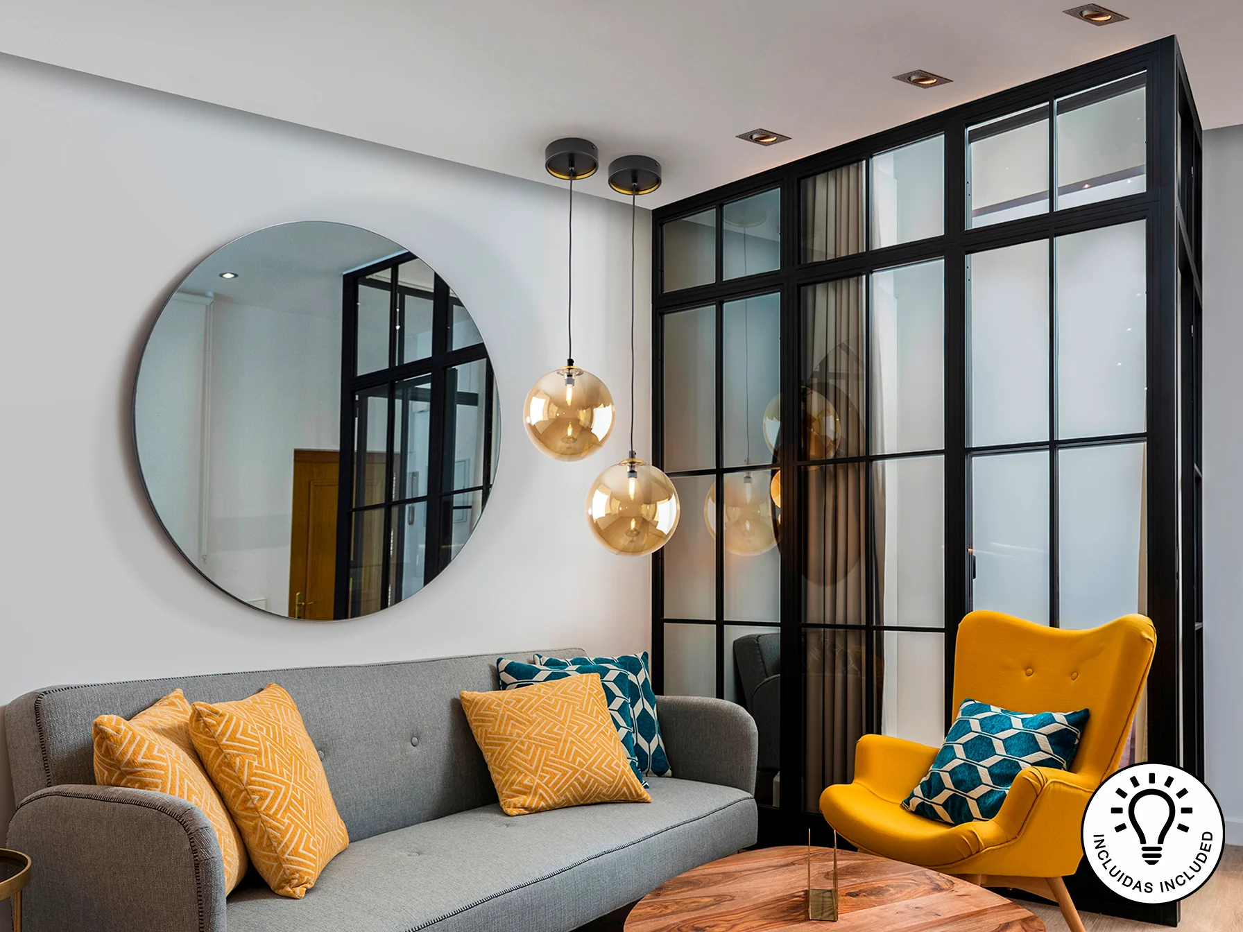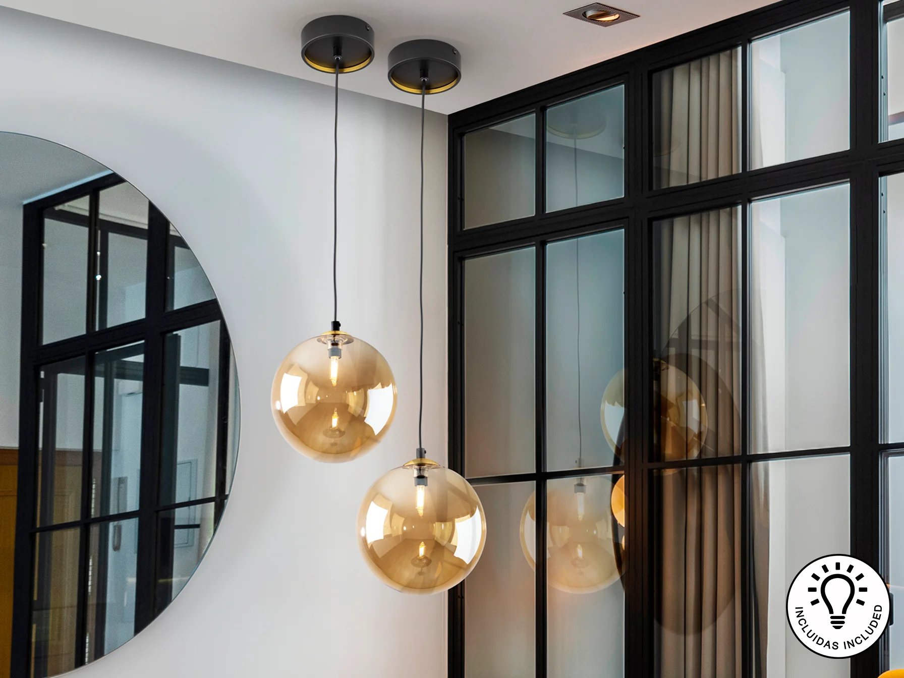 - Luz cálida y acogedora gracias a la tulipa de cristal ámbar.