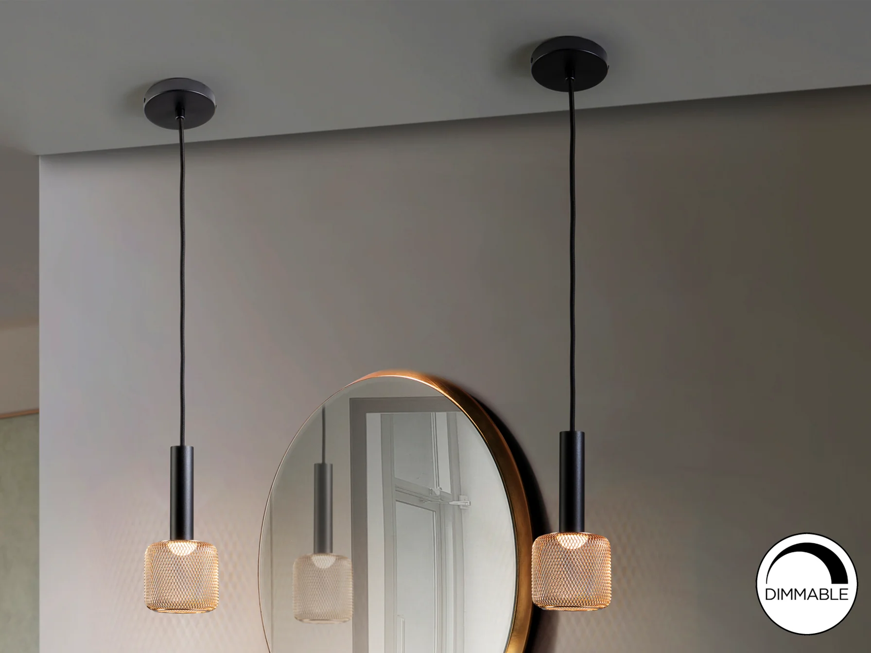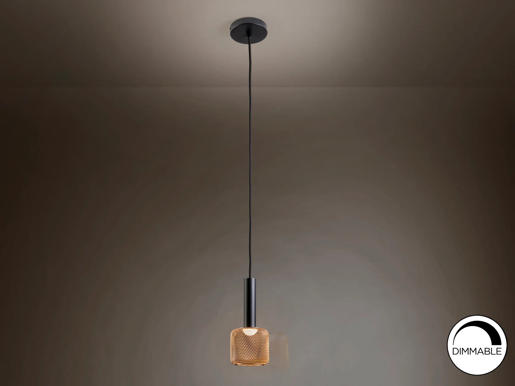 La lámpara Sincro combina la robustez del metal con la suavidad del acrílico opal para crear una luz difusa y agradable. Su diseño con tulipa de malla metálica dorada añade un toque de sofisticación, mientras que la tecnología LED integrada garantiza una iluminación eficiente y duradera. El acabado en negro mate complementa cualquier paleta de colores, convirtiéndola en una pieza versátil para diversos estilos decorativos.