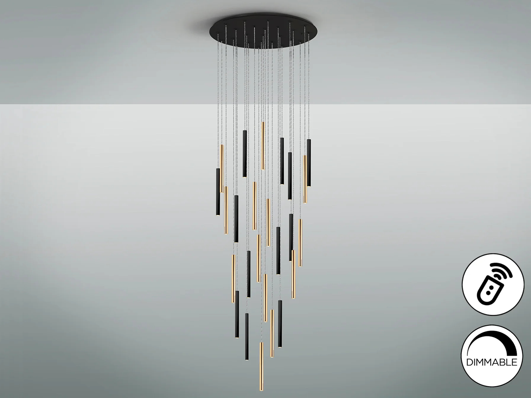 La altura máxima de la lámpara es de 300 cm, lo que permite adaptarla a diferentes alturas de techo.