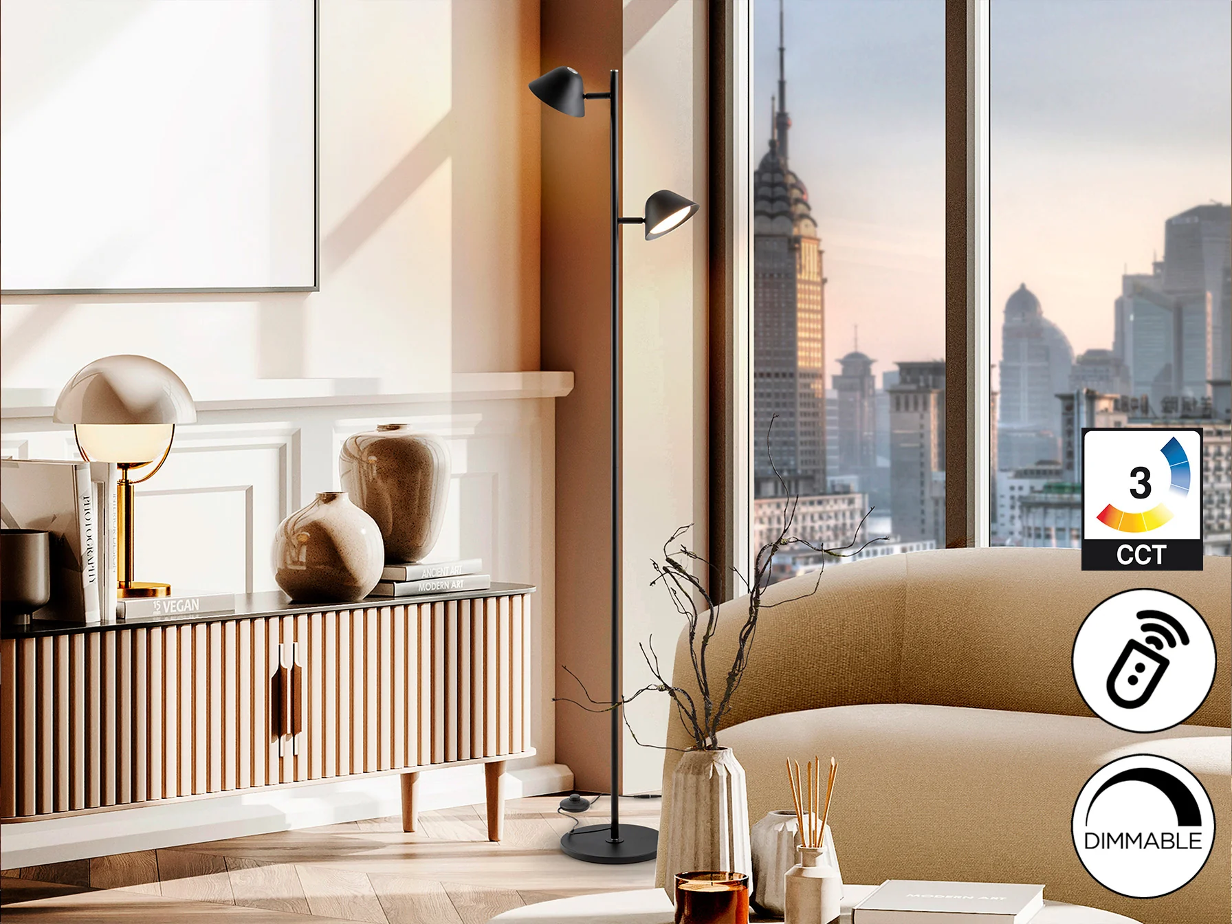 Imagina un salón donde la luz se adapta a tu estado de ánimo, donde cada rincón cobra vida con la intensidad y calidez perfectas. La lámpara de pie Taros de Schuller no es solo una fuente de luz, es una declaración de estilo que transforma tu espacio en un oasis de confort y sofisticación. Olvídate de levantarte para ajustar la iluminación; con su control remoto, tienes el poder de crear la atmósfera ideal con solo un toque. Disfruta de la versatilidad de sus dos luces orientables, que te permiten dirigir la luz exactamente donde la necesitas, ya sea para leer, relajarte o simplemente disfrutar de la compañía de tus seres queridos.