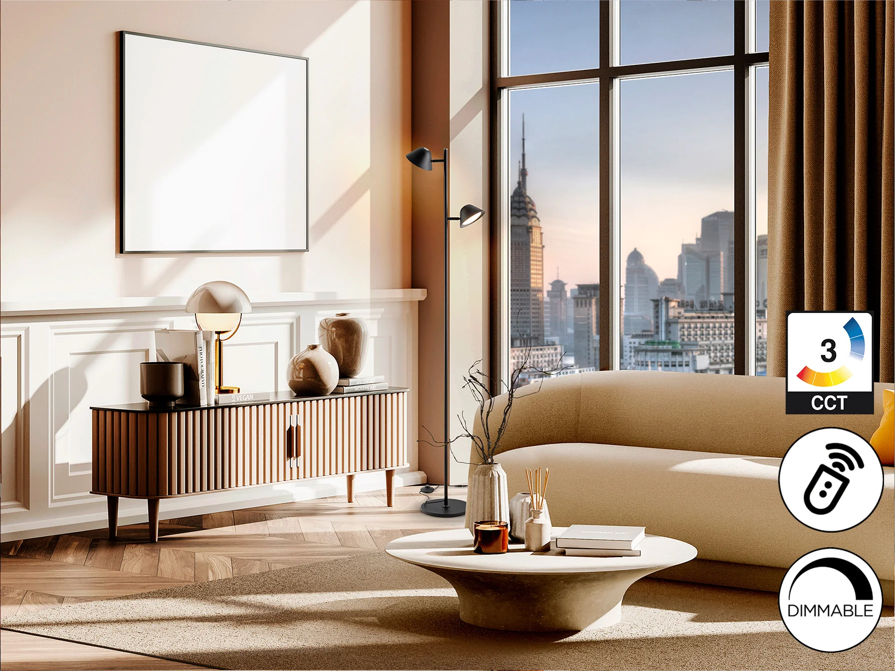 La experiencia de uso de la lámpara Taros es intuitiva y placentera. Su pulsador táctil te permite encender y apagar la lámpara con facilidad, mientras que el control remoto te brinda un control total sobre la intensidad y la temperatura de color de la luz. Ajusta la luz a tu gusto, desde un blanco cálido y relajante hasta un blanco frío y energizante. Las dos luces orientables te permiten crear efectos de iluminación personalizados, resaltando tus objetos favoritos o creando ambientes íntimos y acogedores. Con la lámpara Taros, tienes el poder de transformar tu salón en un espacio único y personal.
