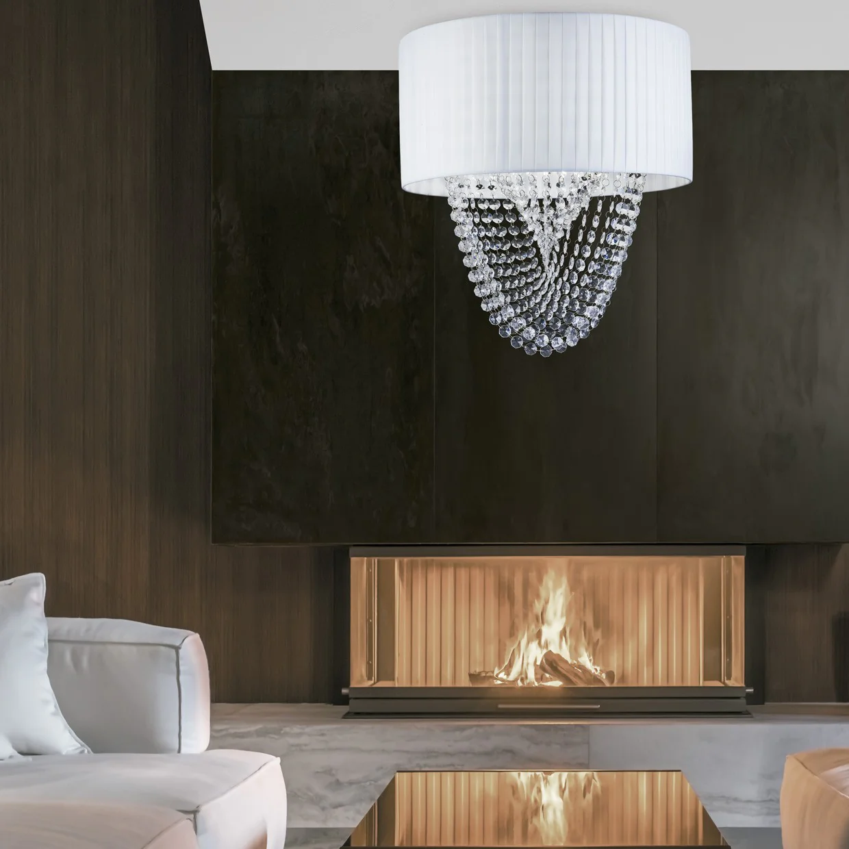 La Lámpara Loran está fabricada con materiales de alta calidad: acrílico, metal y tela. Esto garantiza su durabilidad y resistencia.