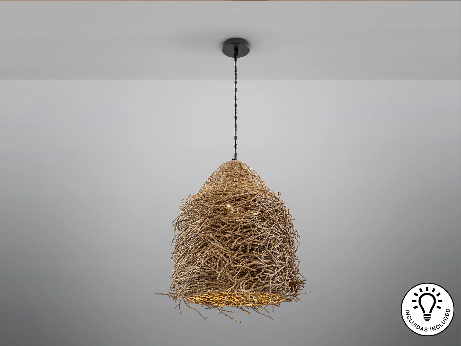 - Bombilla E27 incluida (10W, 900 lúmenes, 3000K).