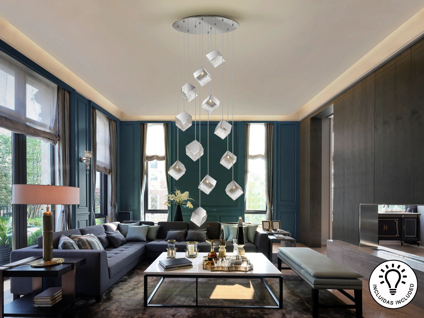 - Bombillas incluidas (12 x 6W G9, 550 lúmenes cada una)