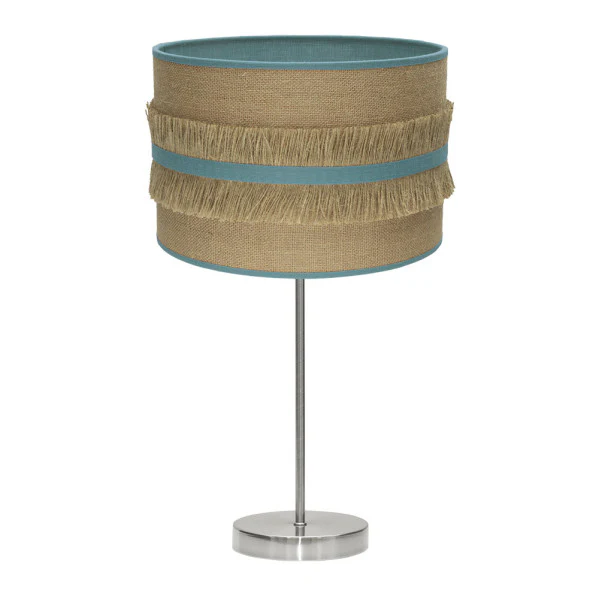 Lámpara sobremesa Natalia de Abrila transforma cualquier rincón en un oasis de estilo y calidez. Su diseño moderno con base en níquel y pantalla textil en saco-turquesa no solo ilumina con luz difusa general, sino que añade un toque decorativo único, perfecto para resaltar detalles en tu hogar. Imagina un dormitorio acogedor donde esta lámpara de 62x30x30 cm crea atmósferas relajantes después de un largo día, o un salón vintage que cobra vida con su pasamanería de flecos y colores vibrantes, resolviendo la necesidad de iluminación funcional y estética sin esfuerzo. Integra palabras clave como ‘lámpara sobremesa decorativa turquesa’, ‘lámpara interior Natalia’ y ‘iluminación rústica moderna’ para una experiencia completa. Descubre la calidad premium de Abrila, disponible en LUZGURU para elevar tu decoración.