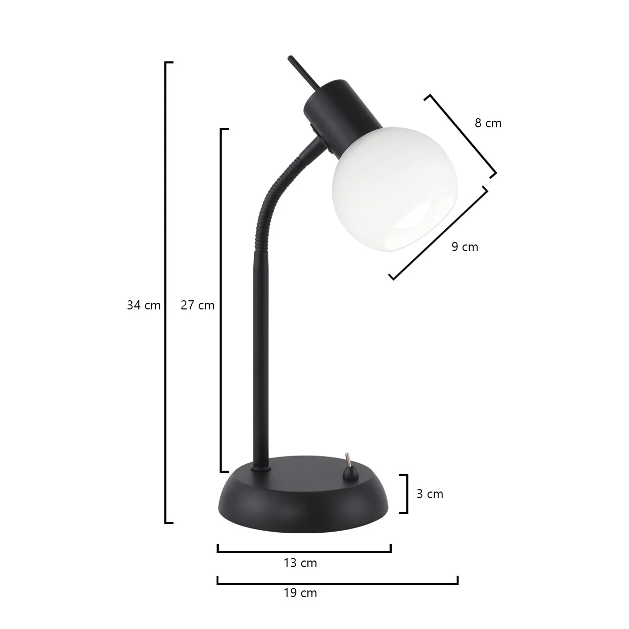 - 1 x Lámpara de sobremesa SOBREMESA OPAL NEGRO MATE