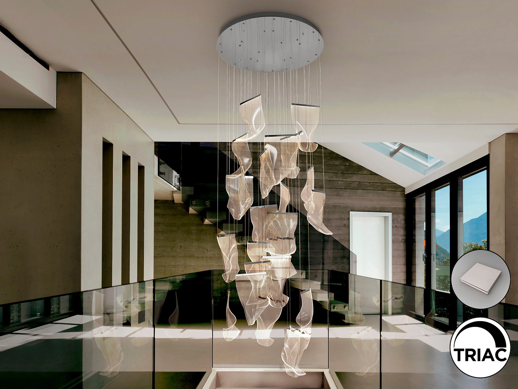 Imagina un salón comedor bañado en una luz cálida y envolvente, donde cada detalle arquitectónico cobra vida propia. La lámpara Velos de Schuller no es solo una fuente de iluminación; es una declaración de estilo, una escultura de luz que transforma el ambiente. Su diseño moderno y gran formato la convierten en el centro de atención, un punto focal que irradia elegancia y sofisticación.