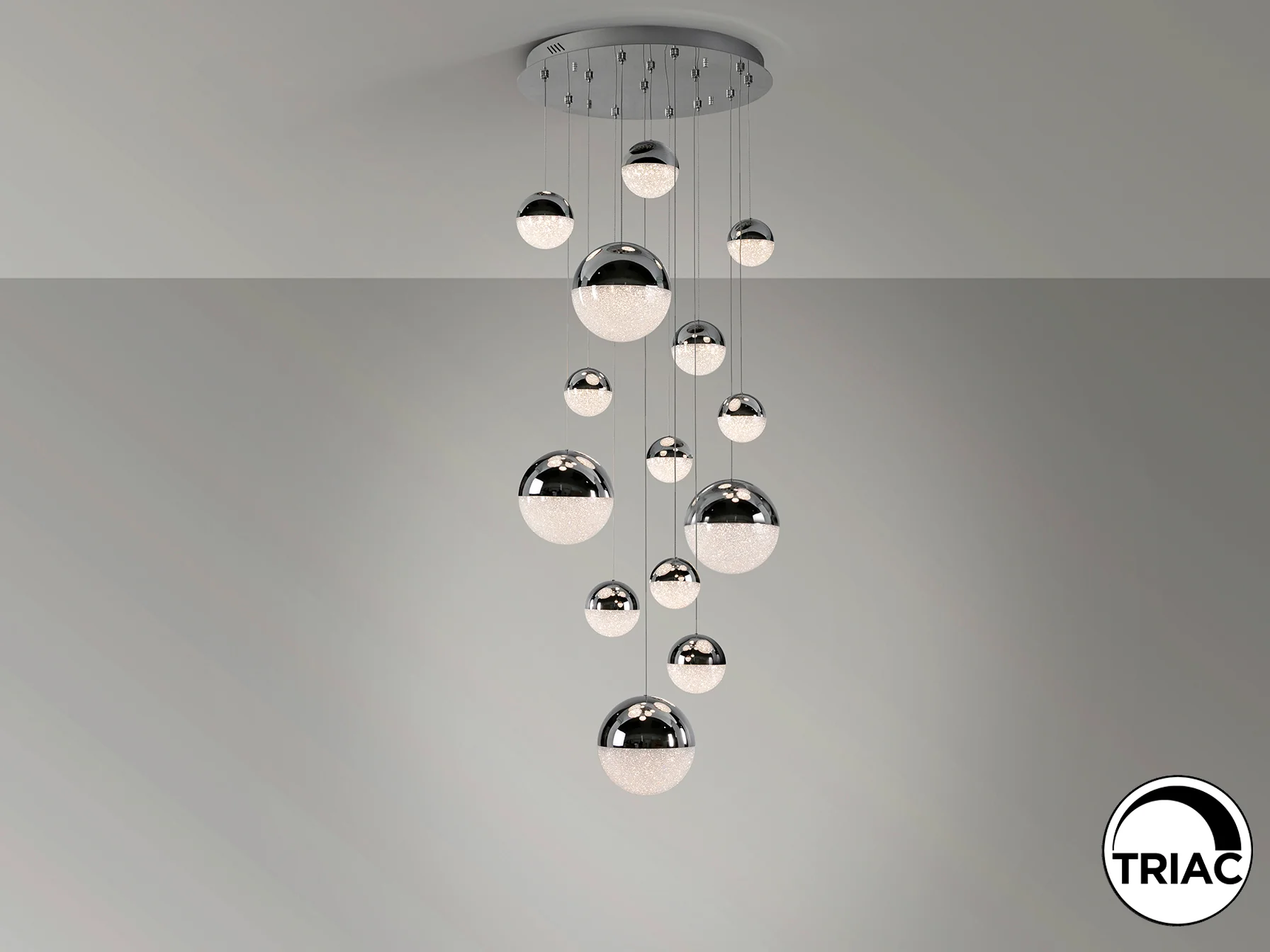 La Sphere-Lampara 14l Cromo D60 Dimable destaca por su construcción en metal cromado y tulipas esféricas de policarbonato. El interior texturizado de las tulipas, combinado con el acabado cromado, proporciona una distribución de la luz suave y uniforme. Con 5.502 lúmenes y una temperatura de color de 3.000K, esta lámpara ofrece una luz cálida y acogedora, ideal para crear ambientes relajantes y confortables.