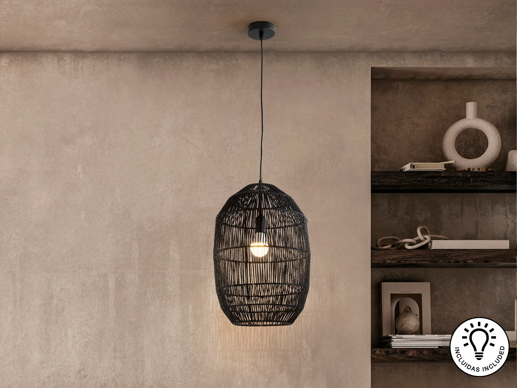 - Pantalla de papel trenzado negro.