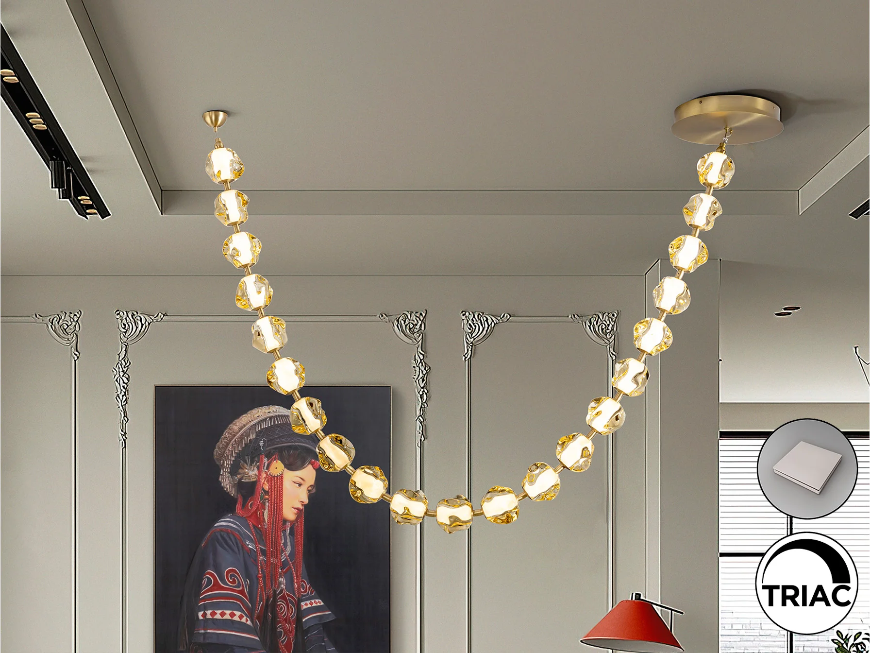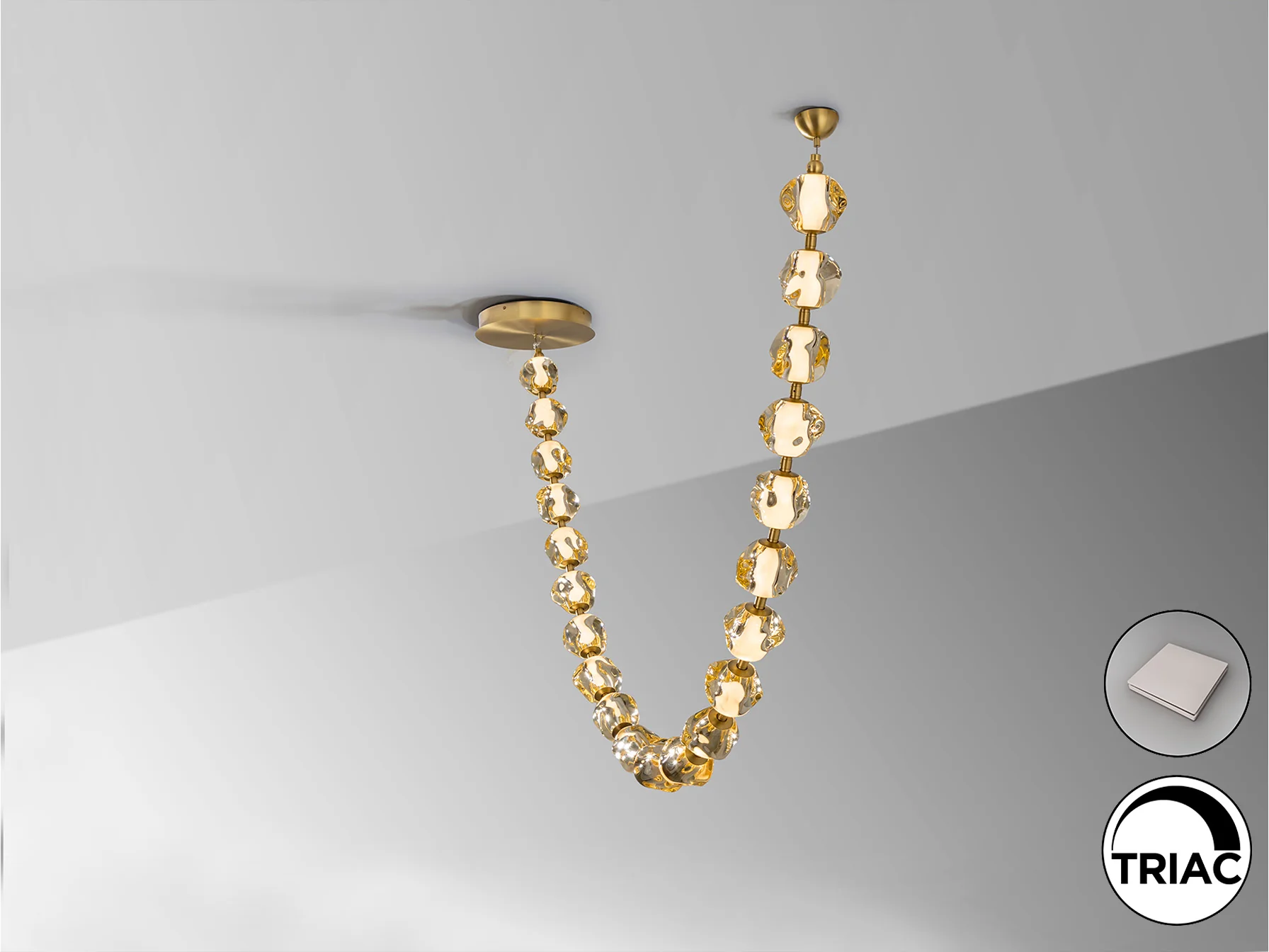 - Acabado en bronce y tulipas de acrílico ámbar.