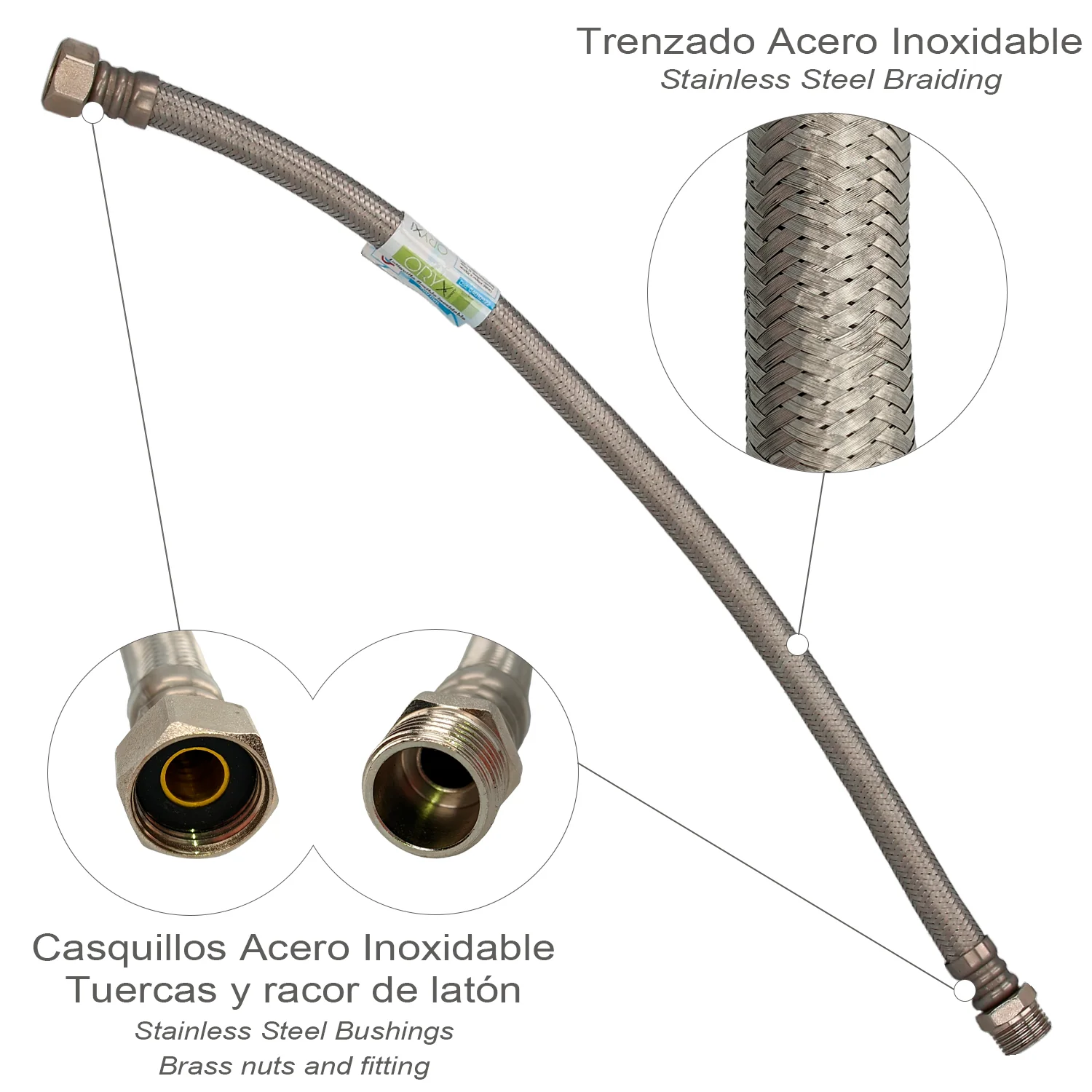 - Artículo conocido como latiguillo fontaneria, latiguillo baño, latiguillo fregadero, latiguillo termo, latiguillo calentador, latiguillo estufa, latiguillo caldera