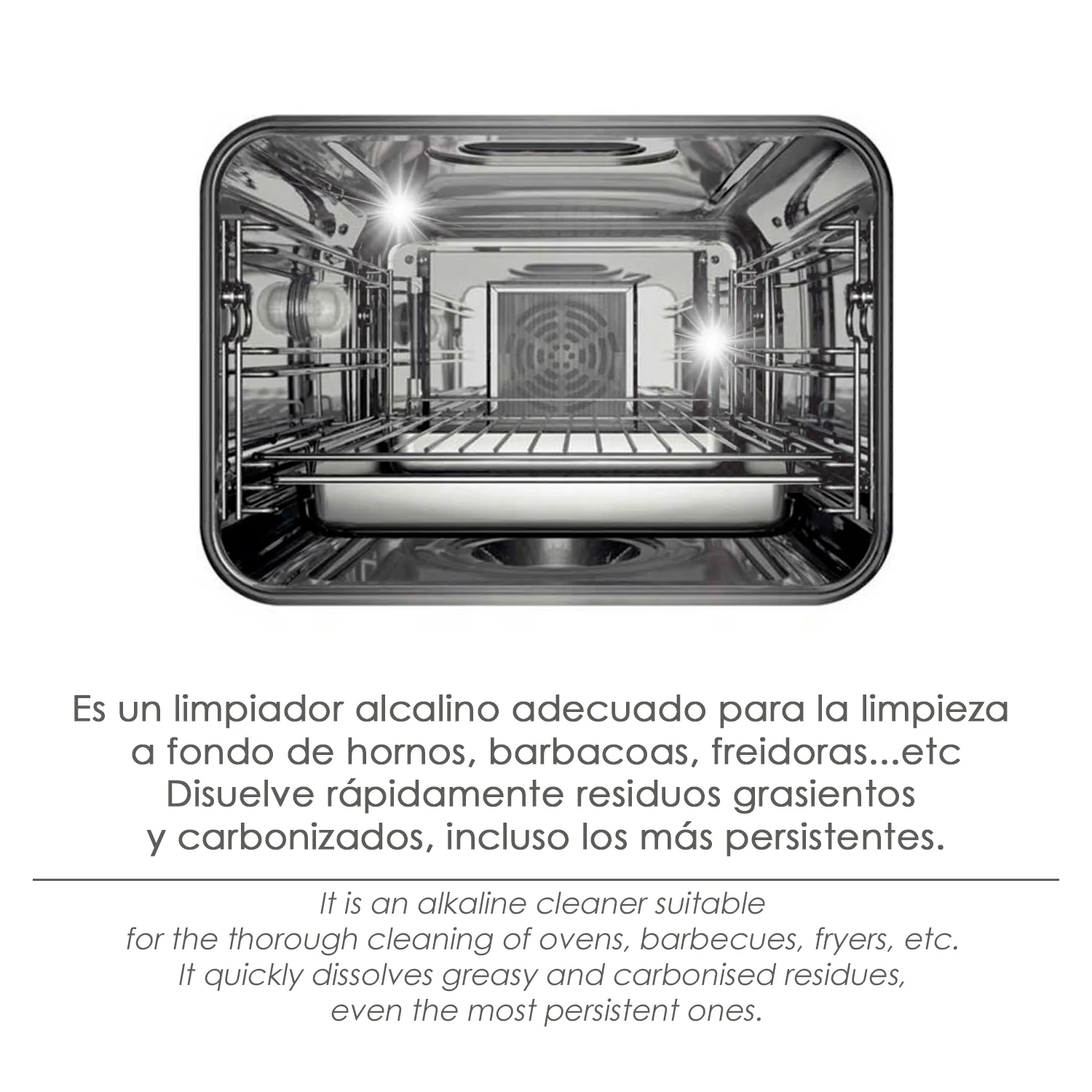 – Es un limpiador alcalino adecuado para la limpieza a fondo de hornos, barbacoas, freidoras, etc.