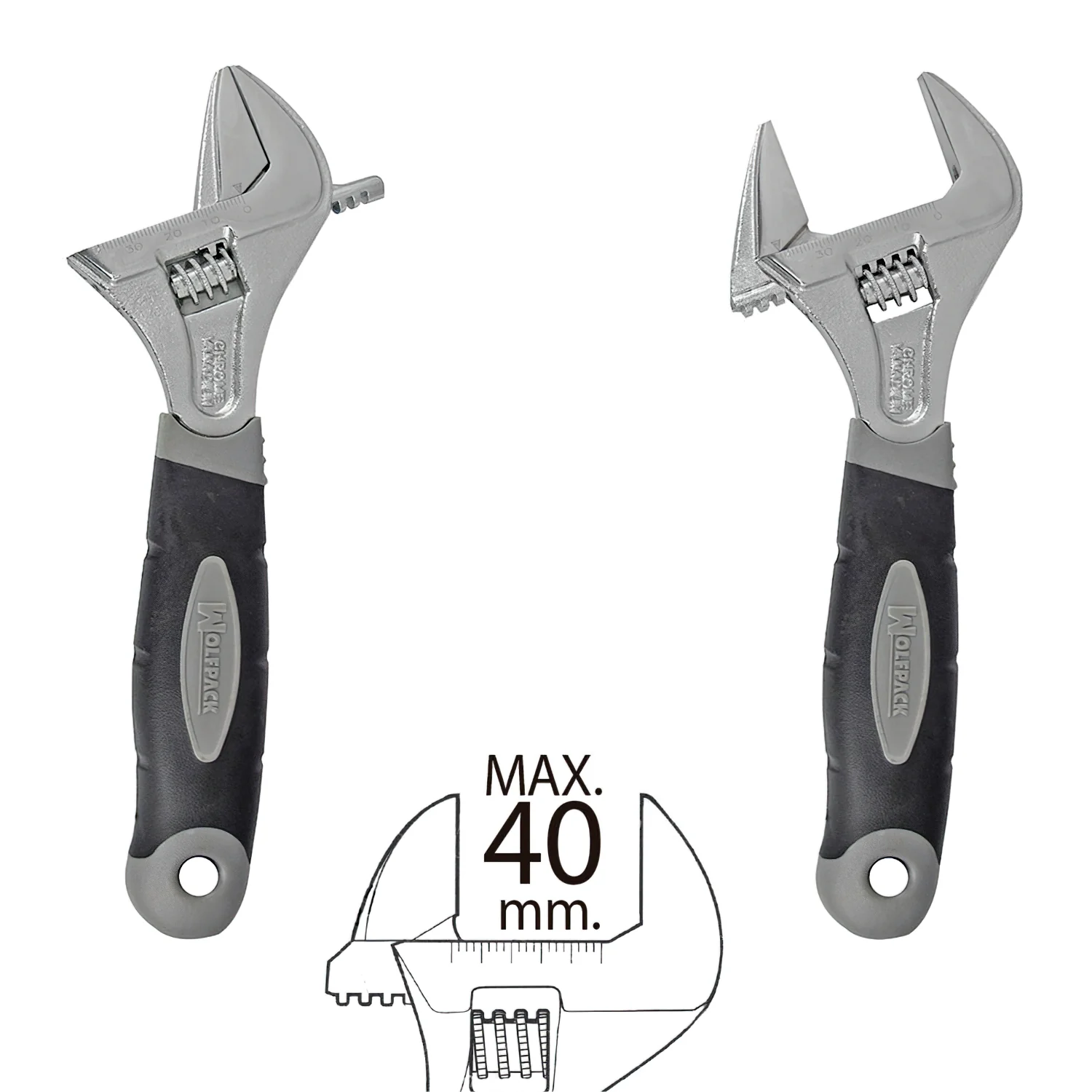 Llave ajustable de la marca WOLFPACK LINEA PROFESIONAL.