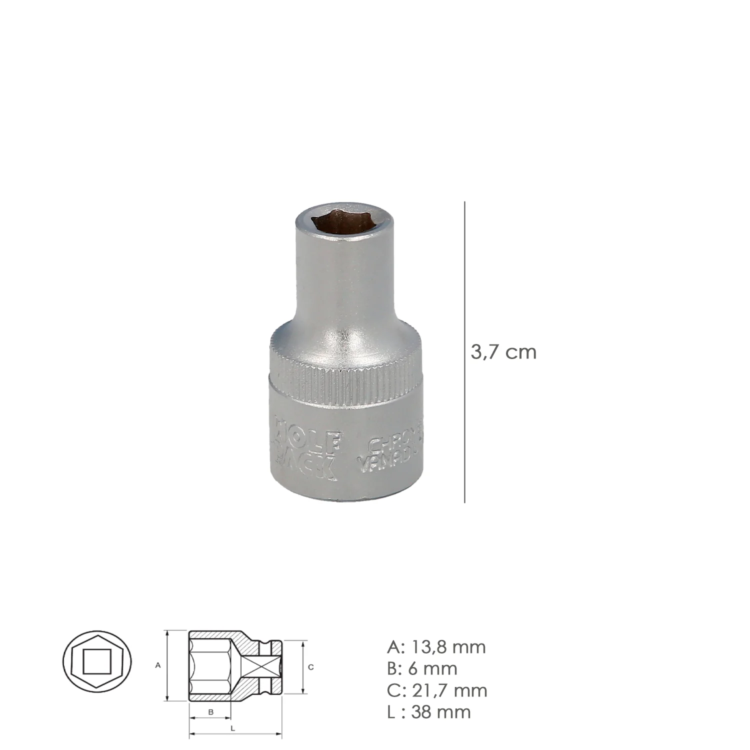 Llave vaso 1/2″ hexagonal de la marca WOLFPACK LINEA PROFESIONAL.