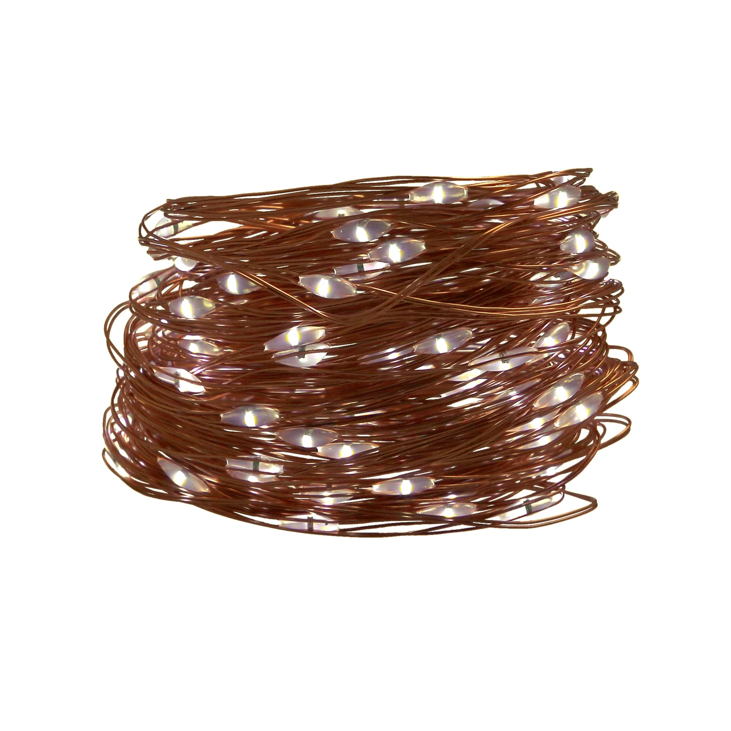 Luz Navidad 100 Microleds Blanco Calido Cable Color Cobre A Bateria (3 AA No incluidas)