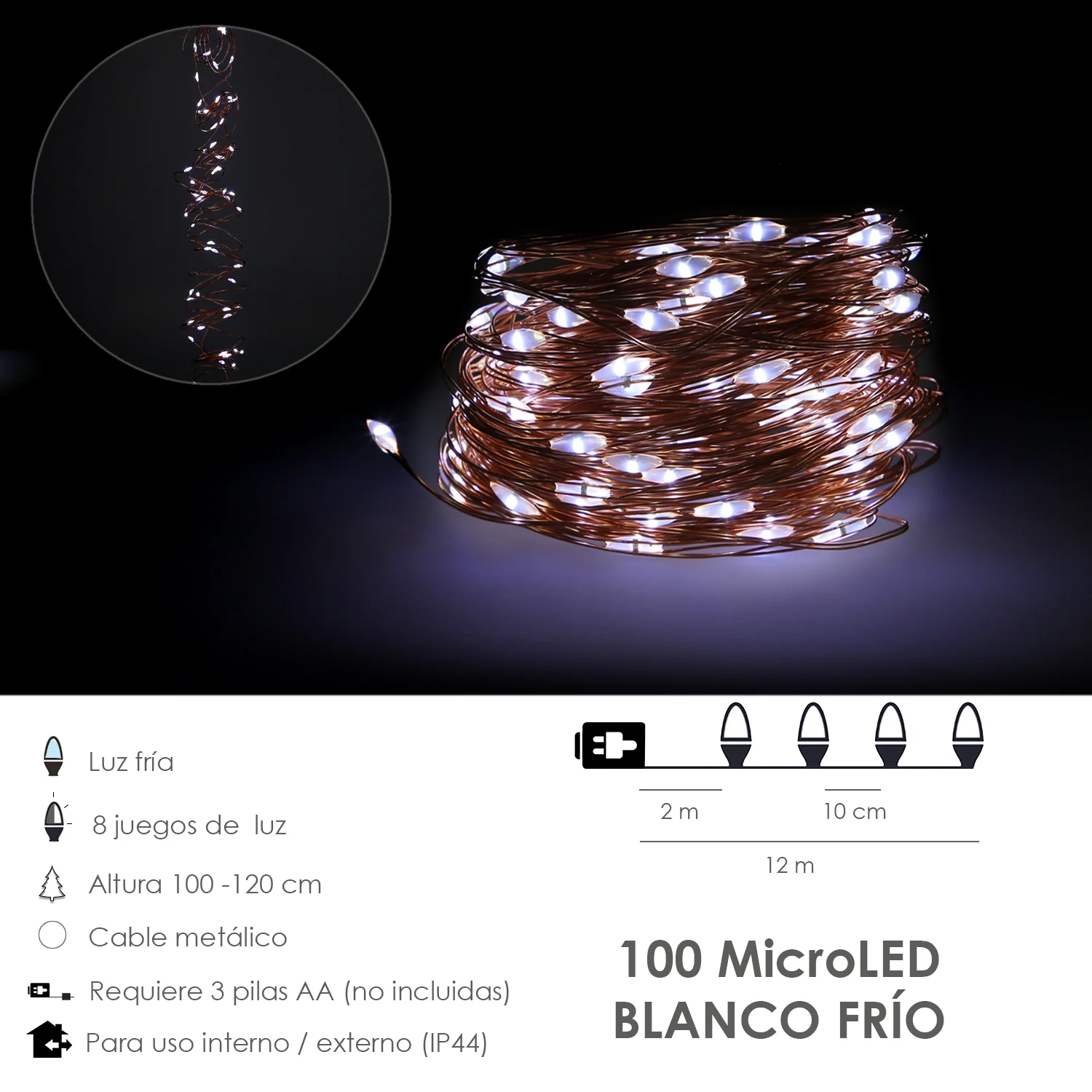 Luz Navidad 100 Microleds Blanco Frio Cable Color Cobre A Bateria (3 AA No incluidas)