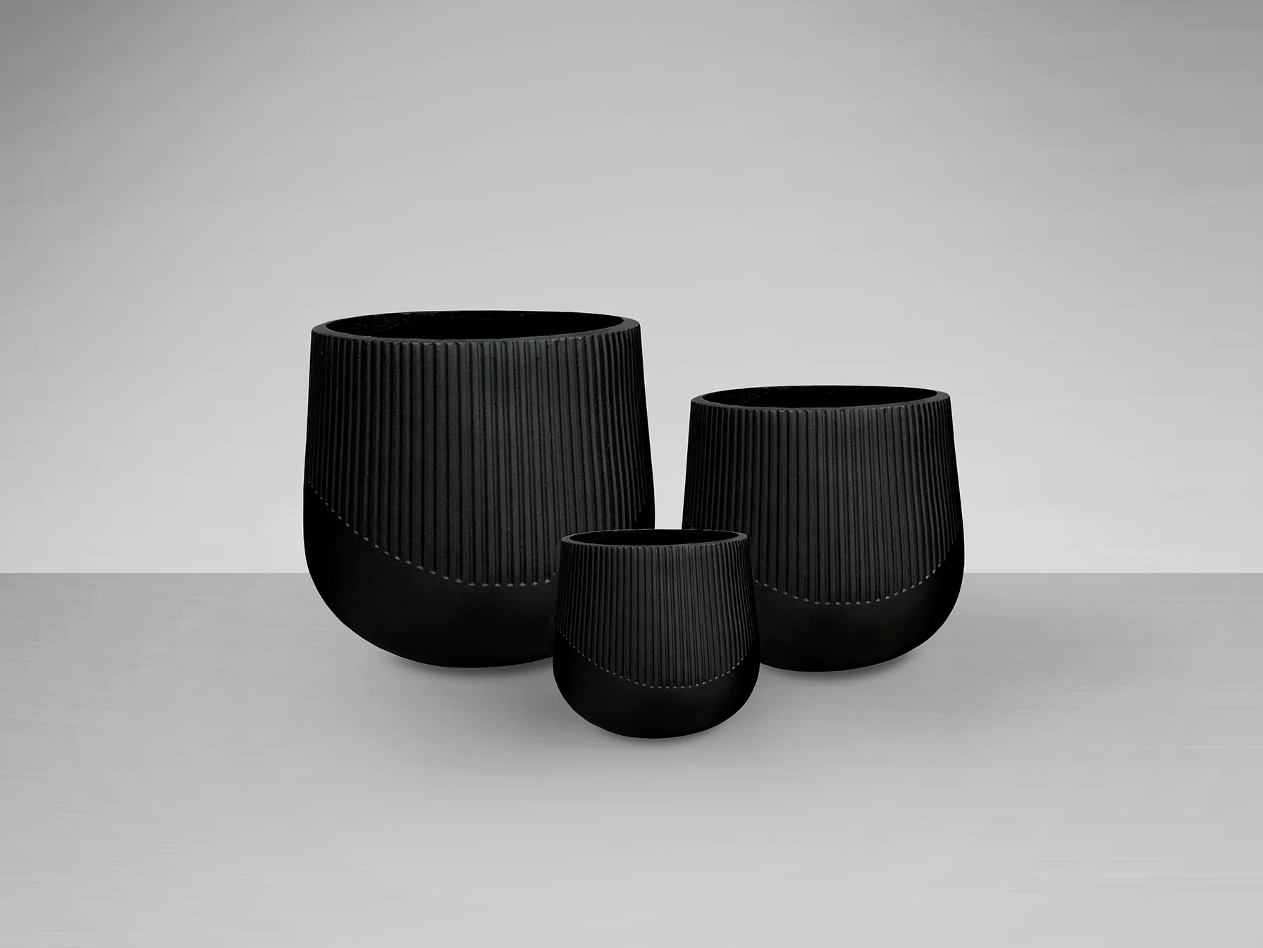 El set Kioto destaca por su cuidada fabricación en fibra de vidrio y resina Fiberclay, que ofrece una gran resistencia a la vez que mantiene un peso ligero. Su acabado en color negro aporta un toque de elegancia y modernidad, integrándose fácilmente en cualquier estilo decorativo. La combinación de diferentes tamaños permite crear composiciones visualmente atractivas, adaptándose a tus necesidades y espacios.
