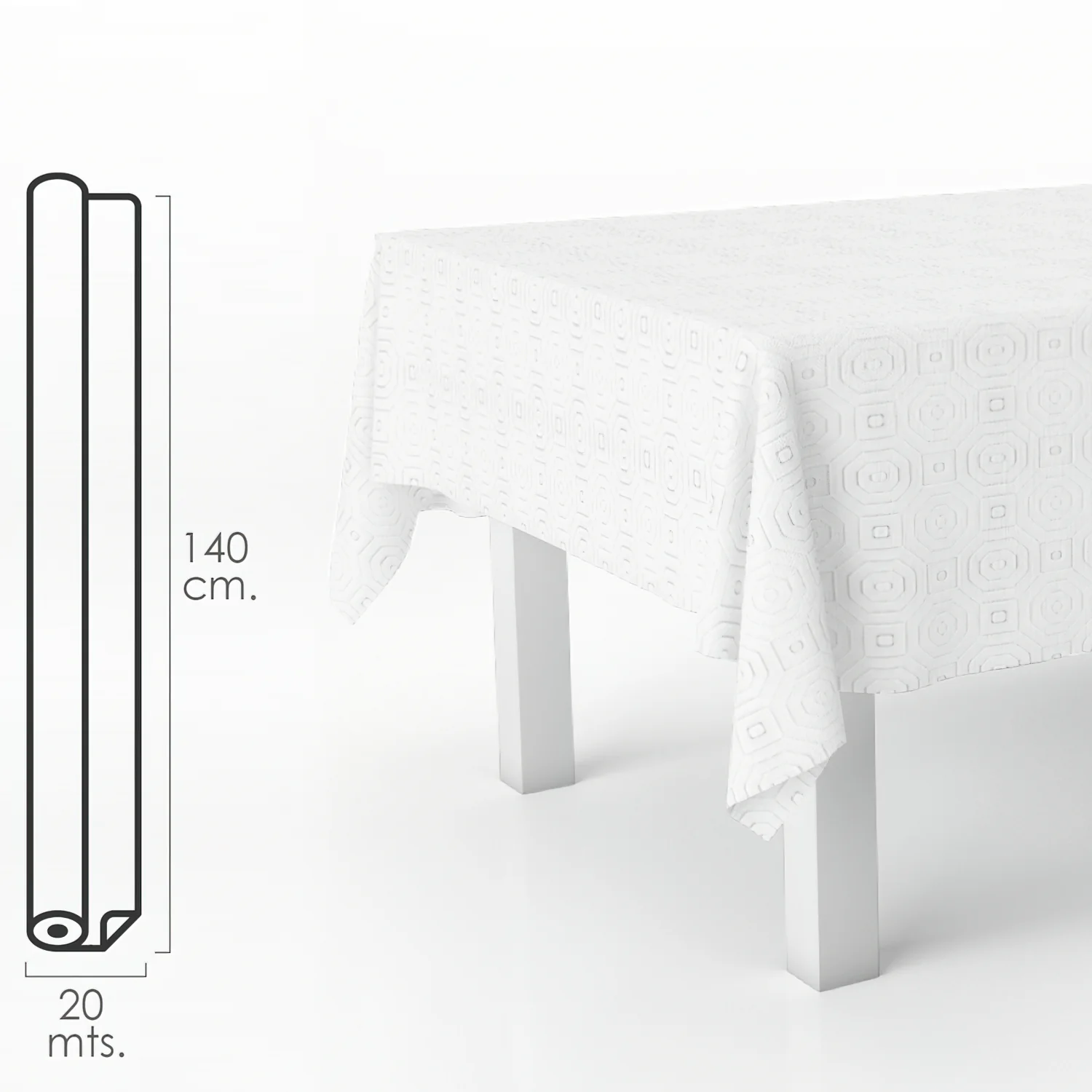 Mantel Hule Muletón Blanco Rectangular. Impermeable Antimanchas PVC 140 cm. x 20 metros. Rollo Recortable. Interior y Exterior