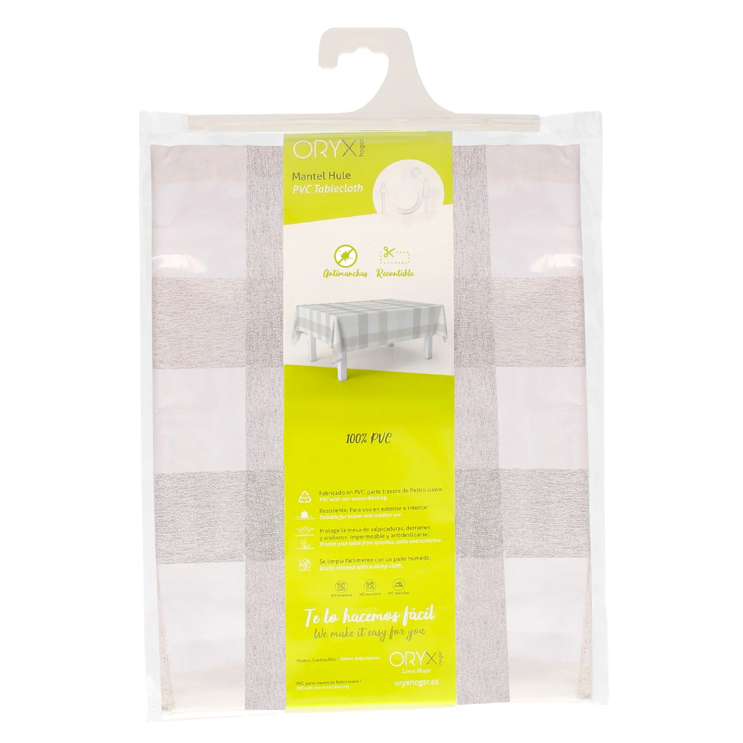 Mantel Hule Rectangular 140 x 250 cm. Cuadros Beige de la marca ORYX.