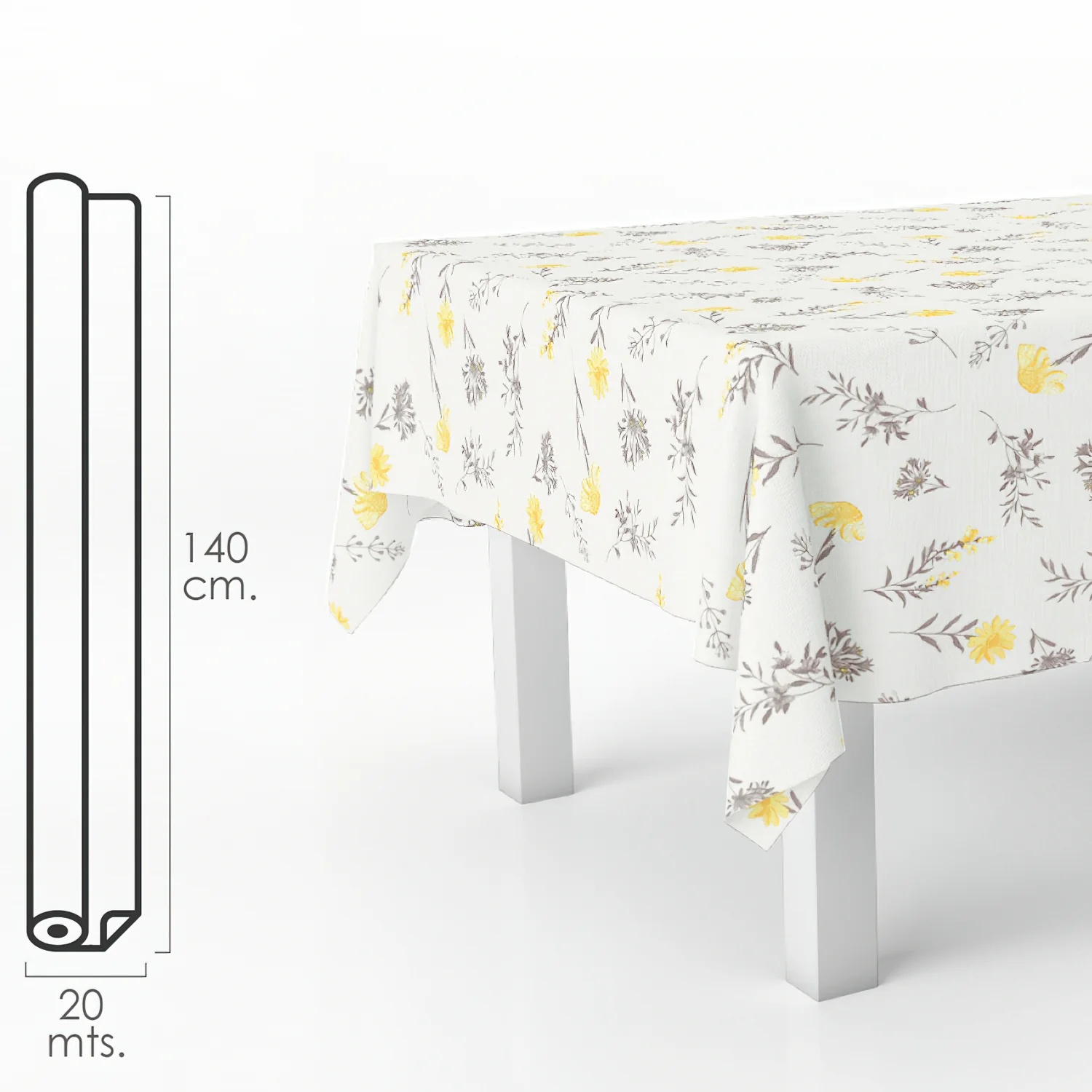Mantel Hule Rollo 140 cm. x 20 metros. Flores Amarillas de la marca ORYX.