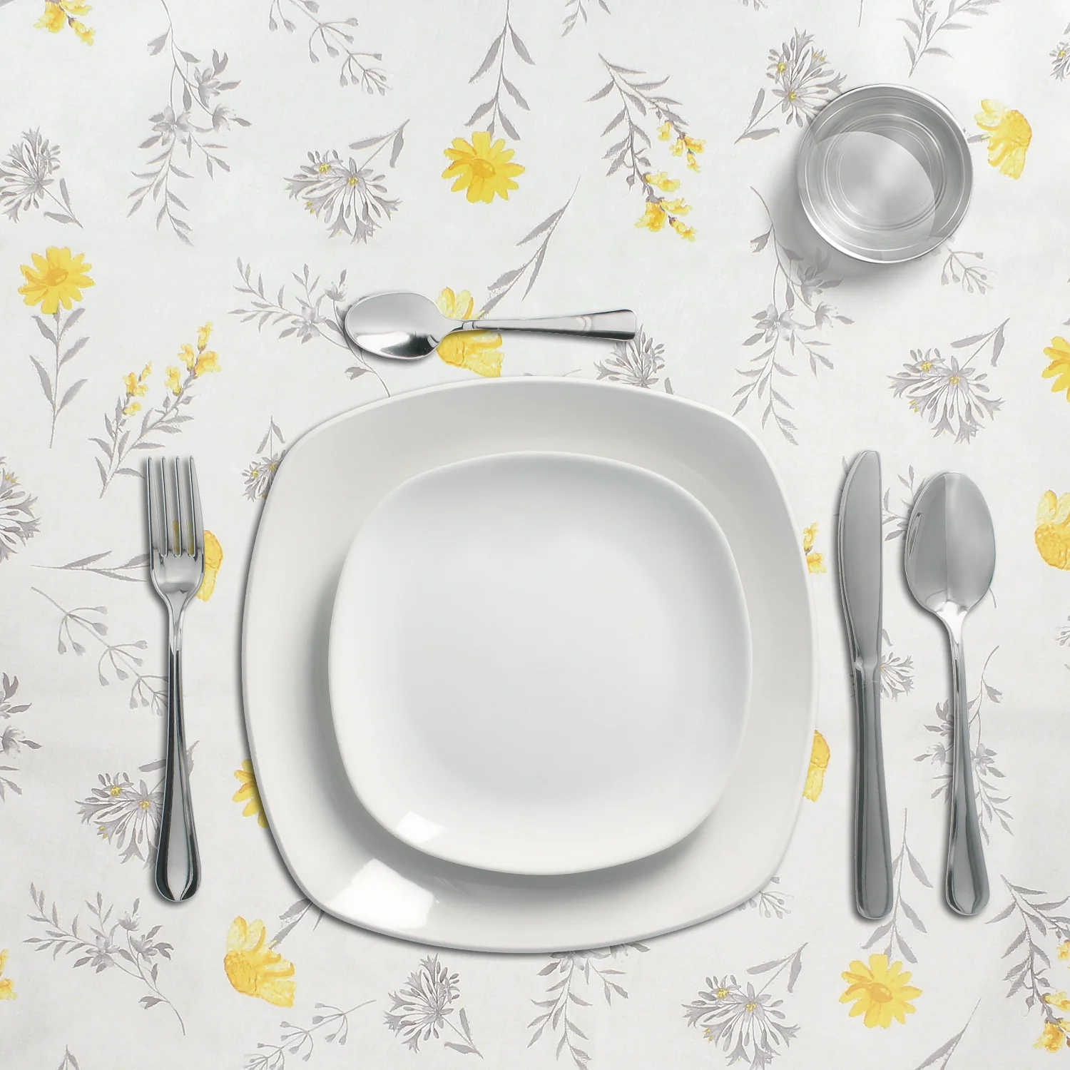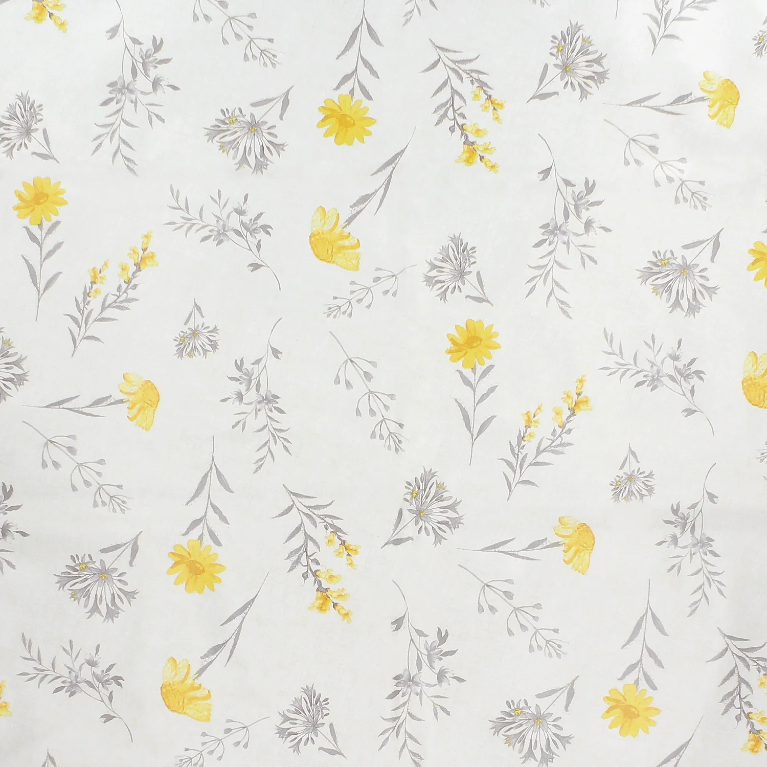 - Mantel Hule estampado en color gris con formas de flores amarillas. Diseño moderno y elegante para cualquier ocasión