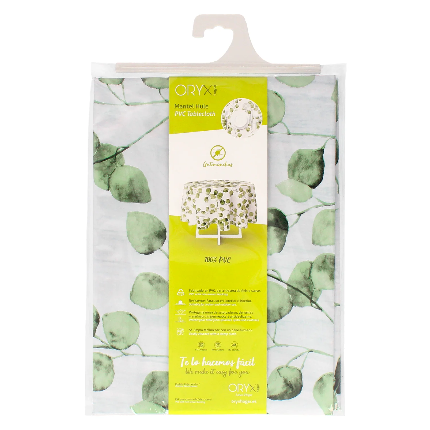 Mantel Hule Redondo Ø140 cm. Hojas Verdes de la marca ORYX.