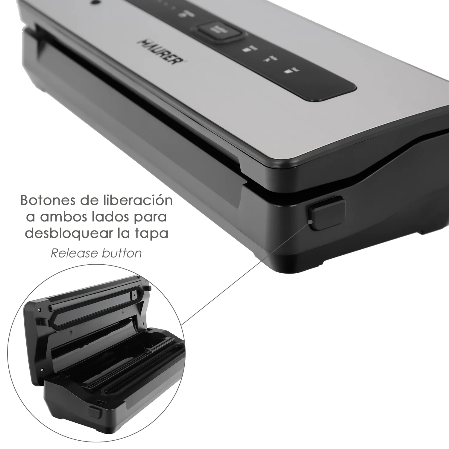 - Máquina para envasar alimentos al vacio, con gran poder de succión, para garantizar un sellado fuerte y duradero