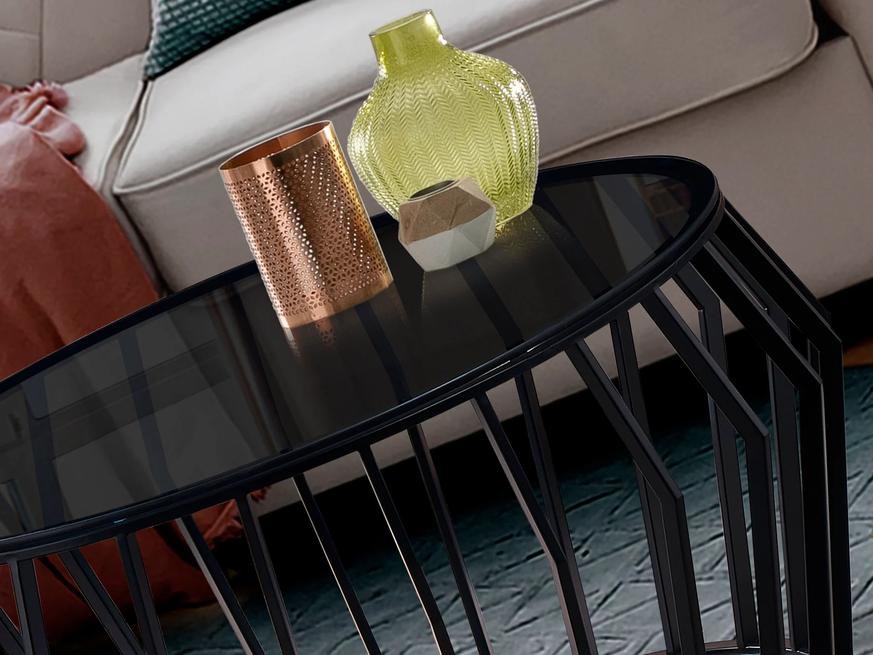 La mesa de centro Ciros destaca por su robustez y diseño. La estructura de metal con acabado en negro mate garantiza durabilidad y estabilidad, mientras que la tapa de cristal smoke de 8 mm añade un toque de sofisticación y facilita la limpieza. Su forma circular favorece la conversación y la interacción, creando un ambiente acogedor en tu salón. El diseño industrial se fusiona con la funcionalidad para ofrecerte una mesa de centro que no solo es estéticamente atractiva, sino también práctica y resistente.