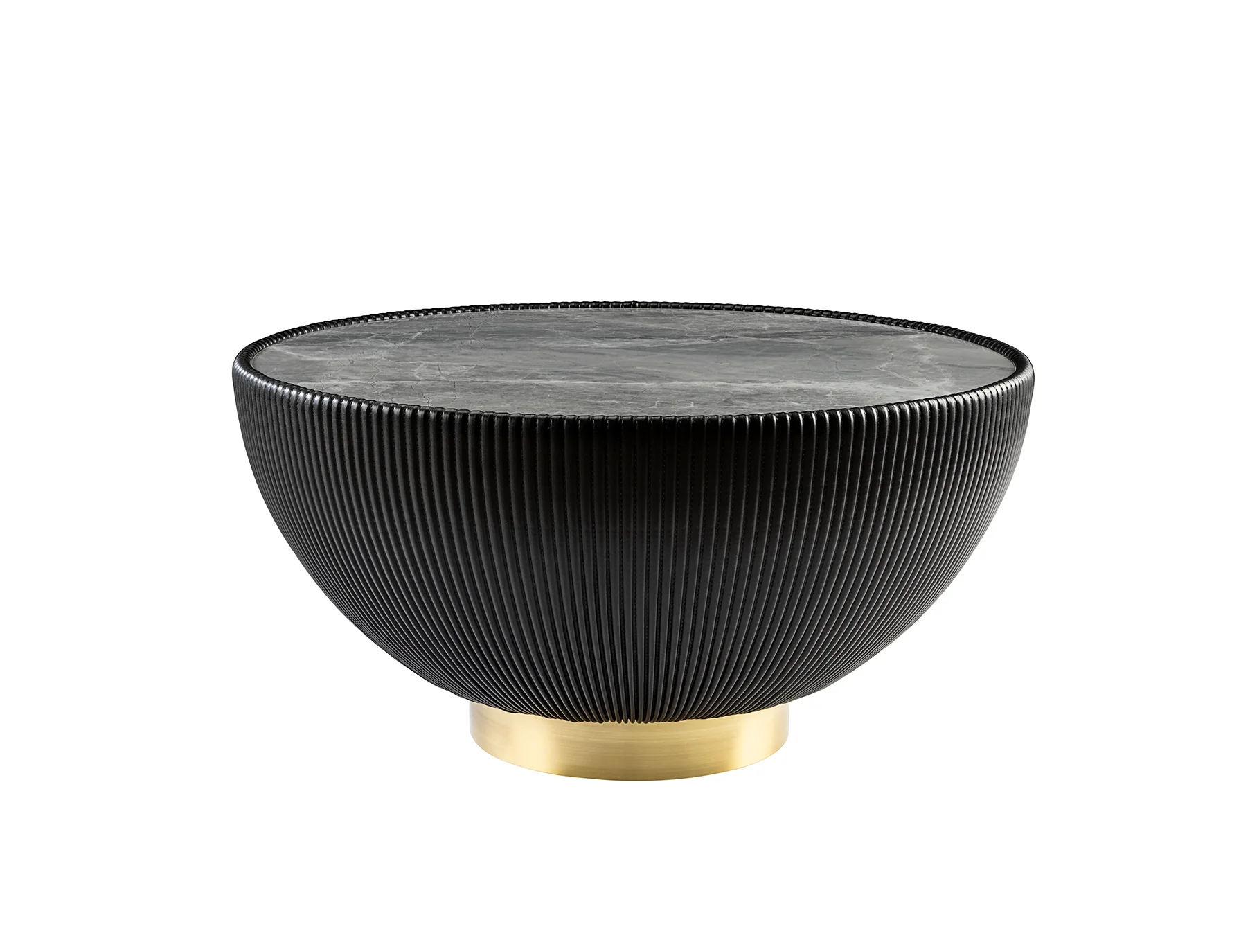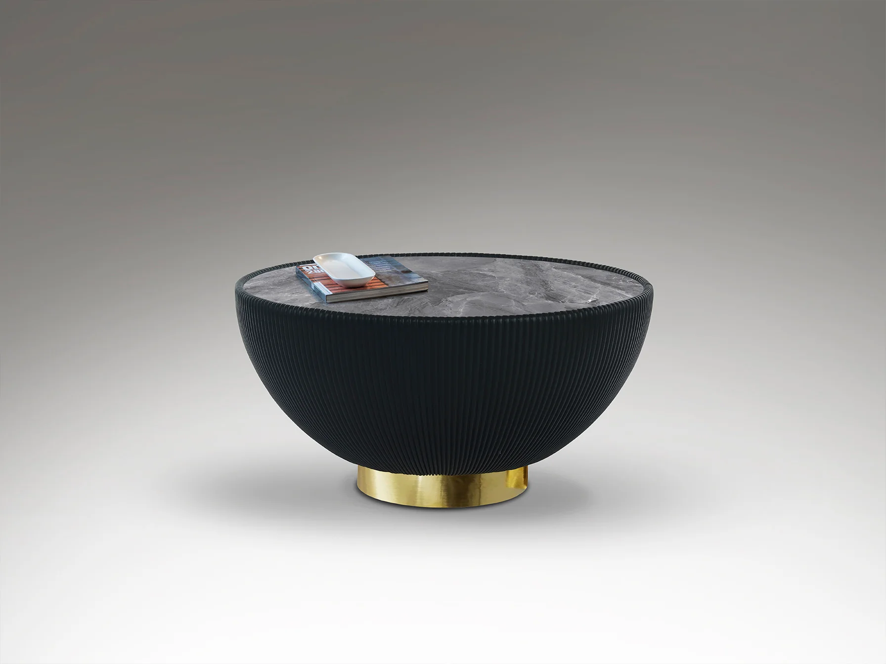 La mesa centro CANDY de Schuller es una pieza excepcional que combina estilo y funcionalidad. Su diseño redondo y elegante, con tapizado en polipiel plisada de color negro, base metálica con acabado en latón y tapa de piedra sinterizada imitación mármol gris oscuro, la convierte en el complemento perfecto para cualquier salón. Disfruta de la comodidad y la elegancia que solo Schuller puede ofrecer. Su tamaño compacto la hace ideal para espacios reducidos, sin sacrificar estilo o funcionalidad.