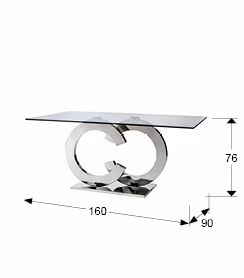 La mesa Casandra destaca por su robustez y diseño. La estructura de acero inoxidable garantiza durabilidad y estabilidad, mientras que la tapa de cristal de seguridad de 12 mm de grosor ofrece una superficie elegante y fácil de limpiar. Sus dimensiones rectangulares permiten acomodar cómodamente a varios comensales, creando un ambiente acogedor y funcional. El acabado de alto brillo refleja la luz, ampliando visualmente el espacio.