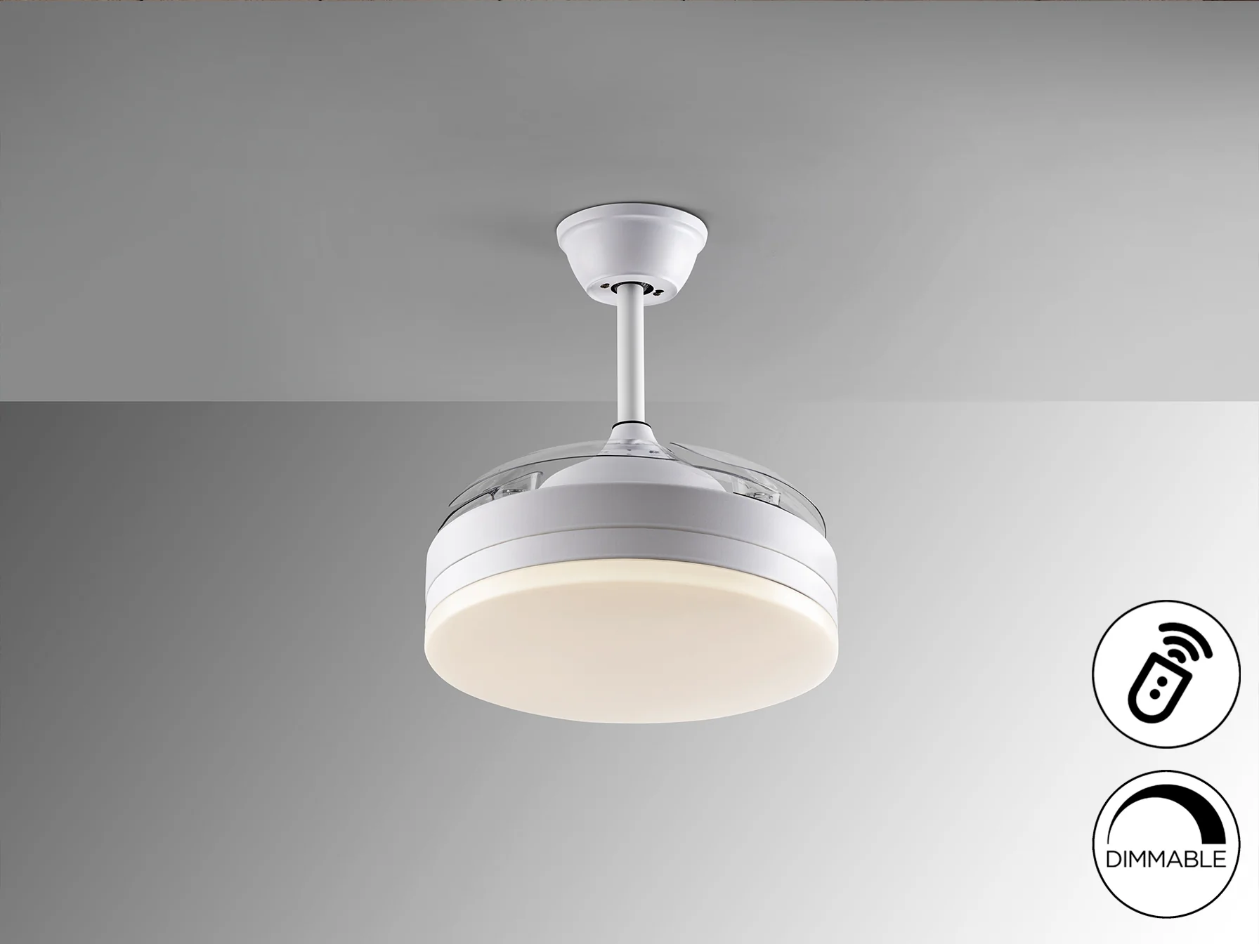 Construido con materiales de alta calidad como metal y acrílico, el Vento Mini-Ventilador Blanc ofrece durabilidad y un diseño elegante. Su motor DC de 6 velocidades garantiza un funcionamiento silencioso y eficiente, adaptándose a tus necesidades de ventilación. La función de inversión permite utilizarlo tanto en verano como en invierno, optimizando la circulación del aire en tu hogar. La luz LED dimmable CCT te permite ajustar la temperatura de color y la intensidad de la luz, creando el ambiente perfecto.
