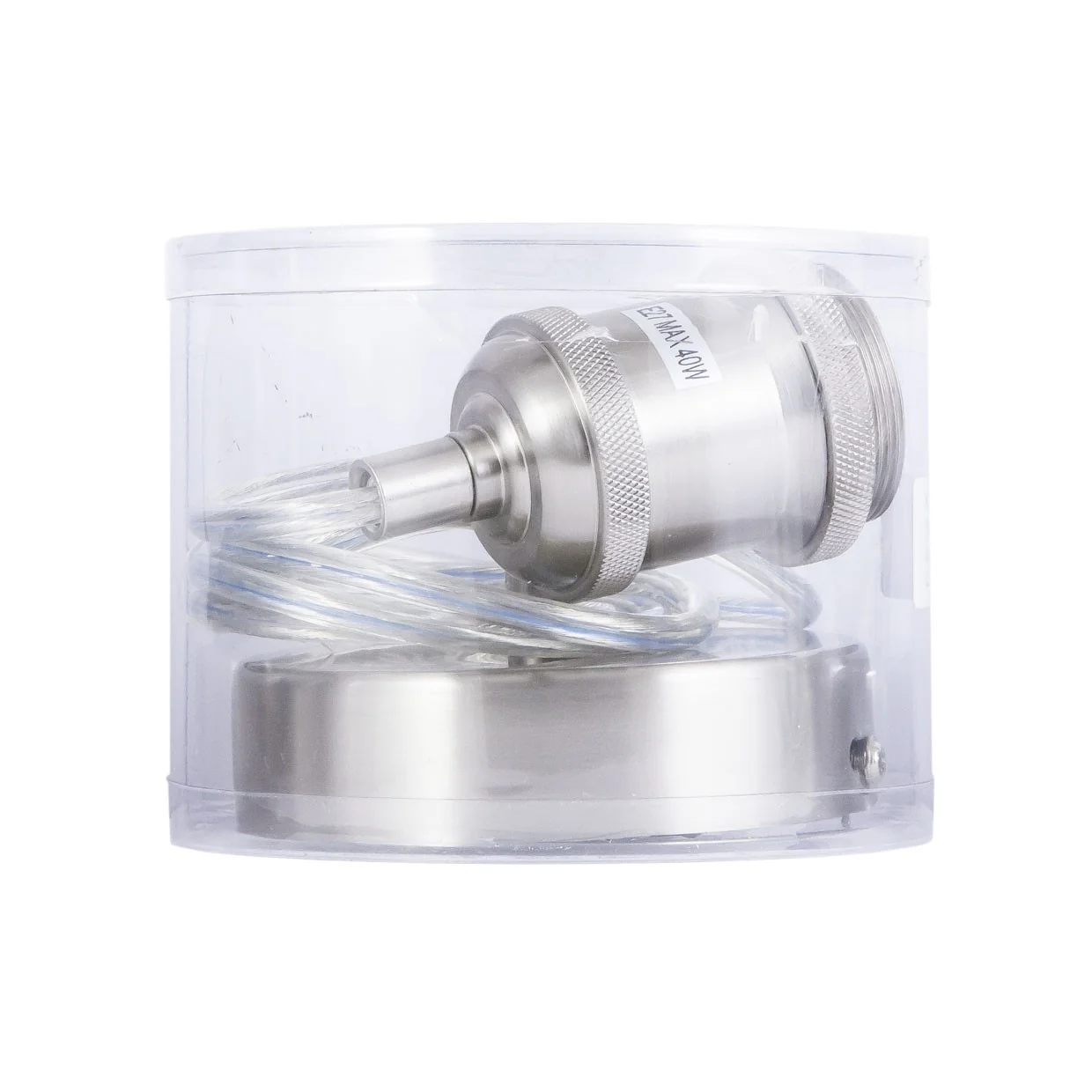 Con su diseño minimalista y su acabado en níquel satinado, el PENDEL ELKAN se integra fácilmente en cualquier estilo decorativo, desde lo industrial hasta lo contemporáneo. Su tamaño compacto (10x10x14 cm) lo hace perfecto para espacios pequeños y grandes, añadiendo un toque de elegancia sin ocupar demasiado espacio.