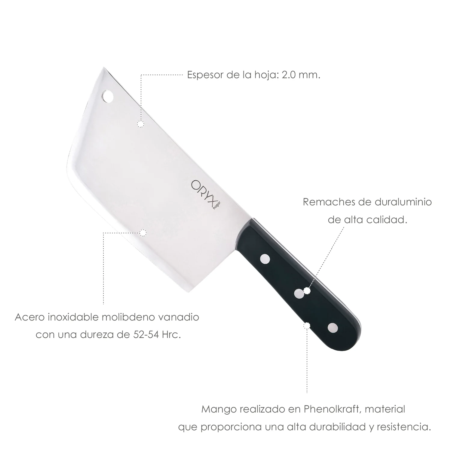 - Artículo conocido como hacha de carnicero, hachuela, macheta, cuchillo de carnicero